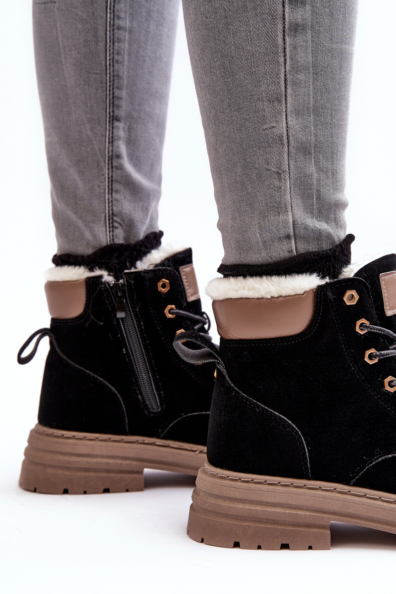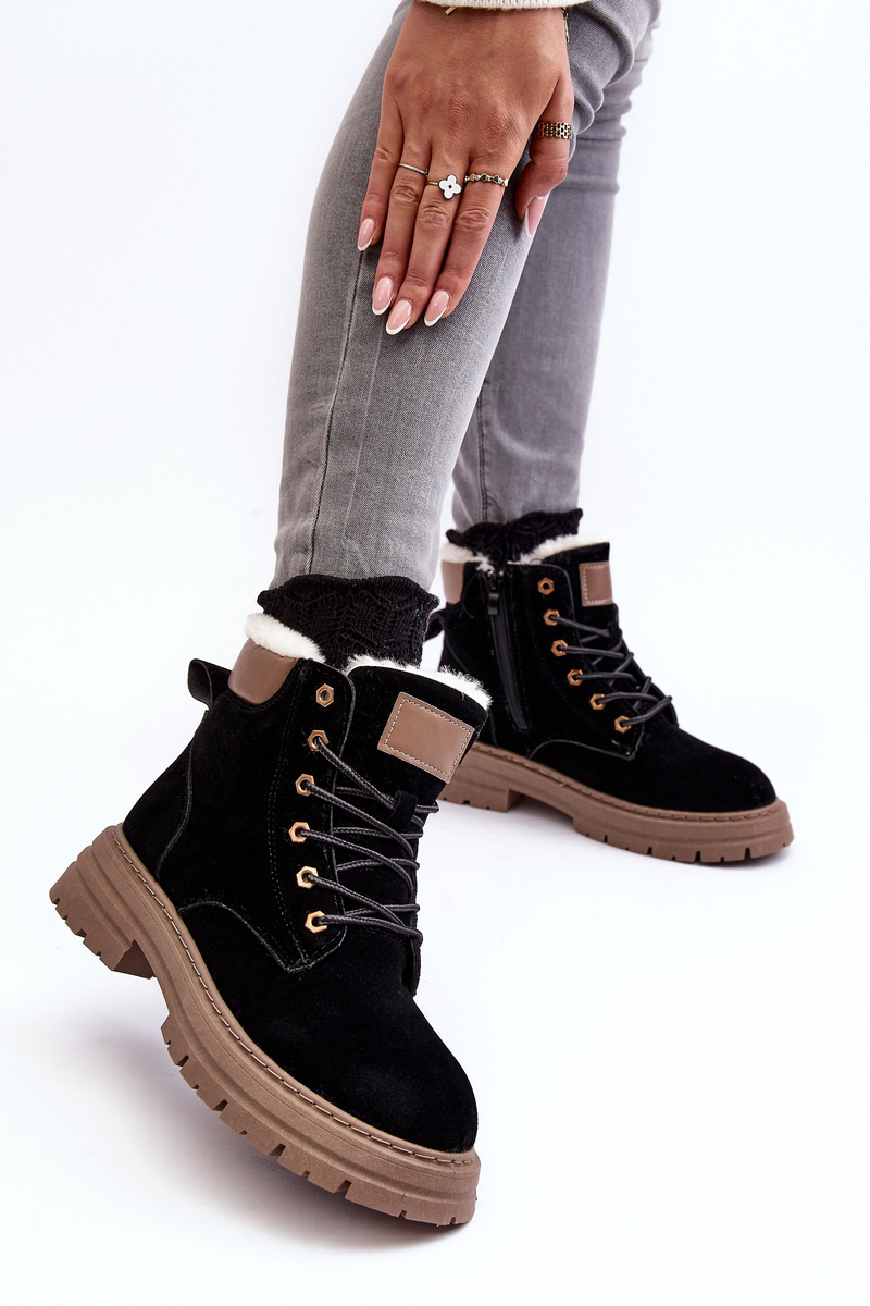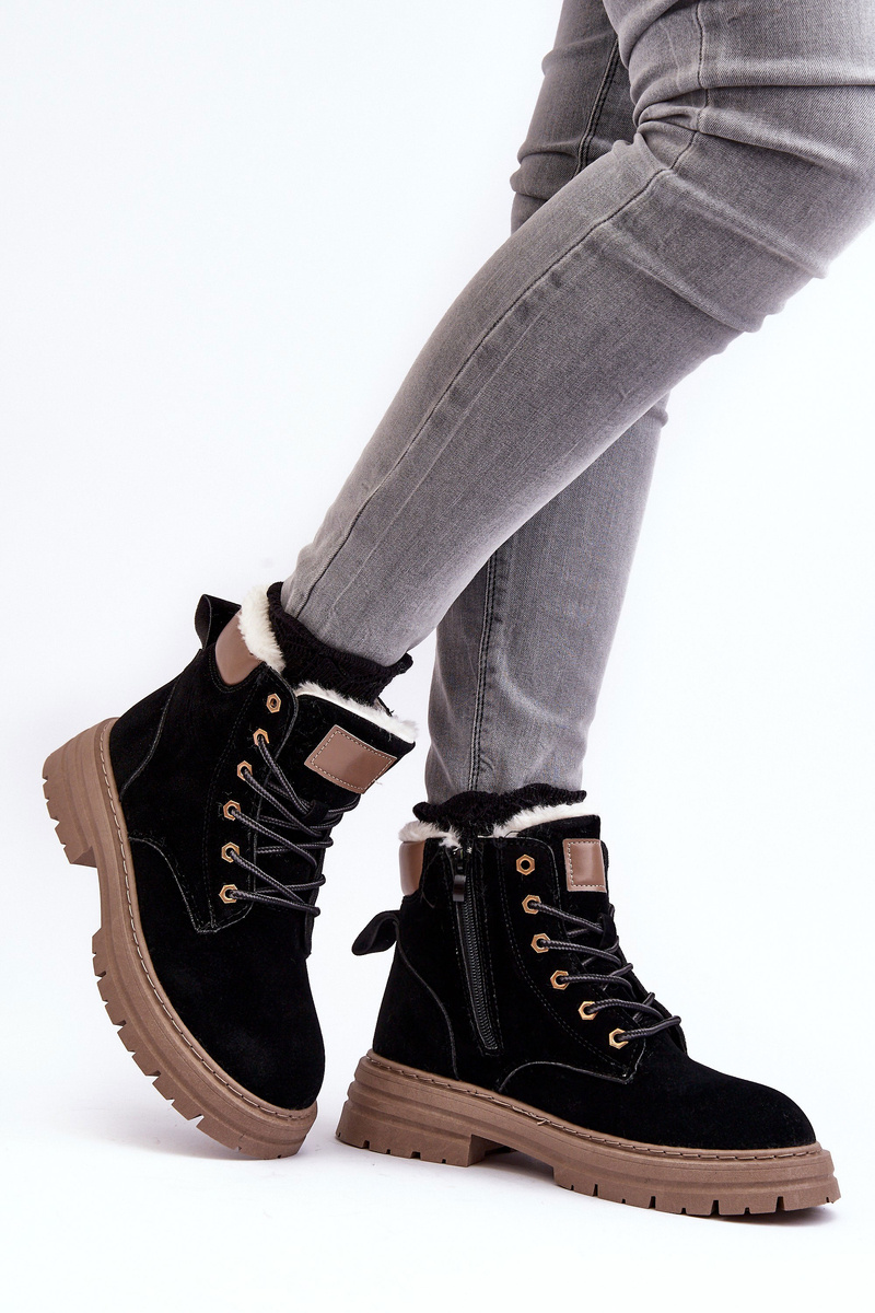 Жіночі стьобані черевики з хутряною підкладкою, чорні фенан
