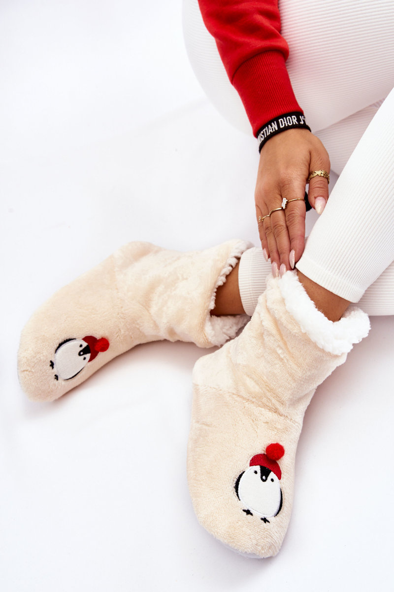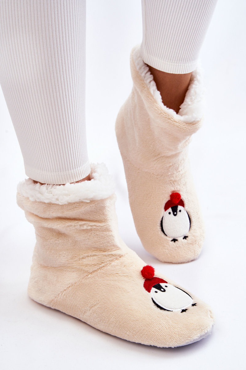 Жіночі тапочки Теплі тапочки з пінгвінами Бежеві