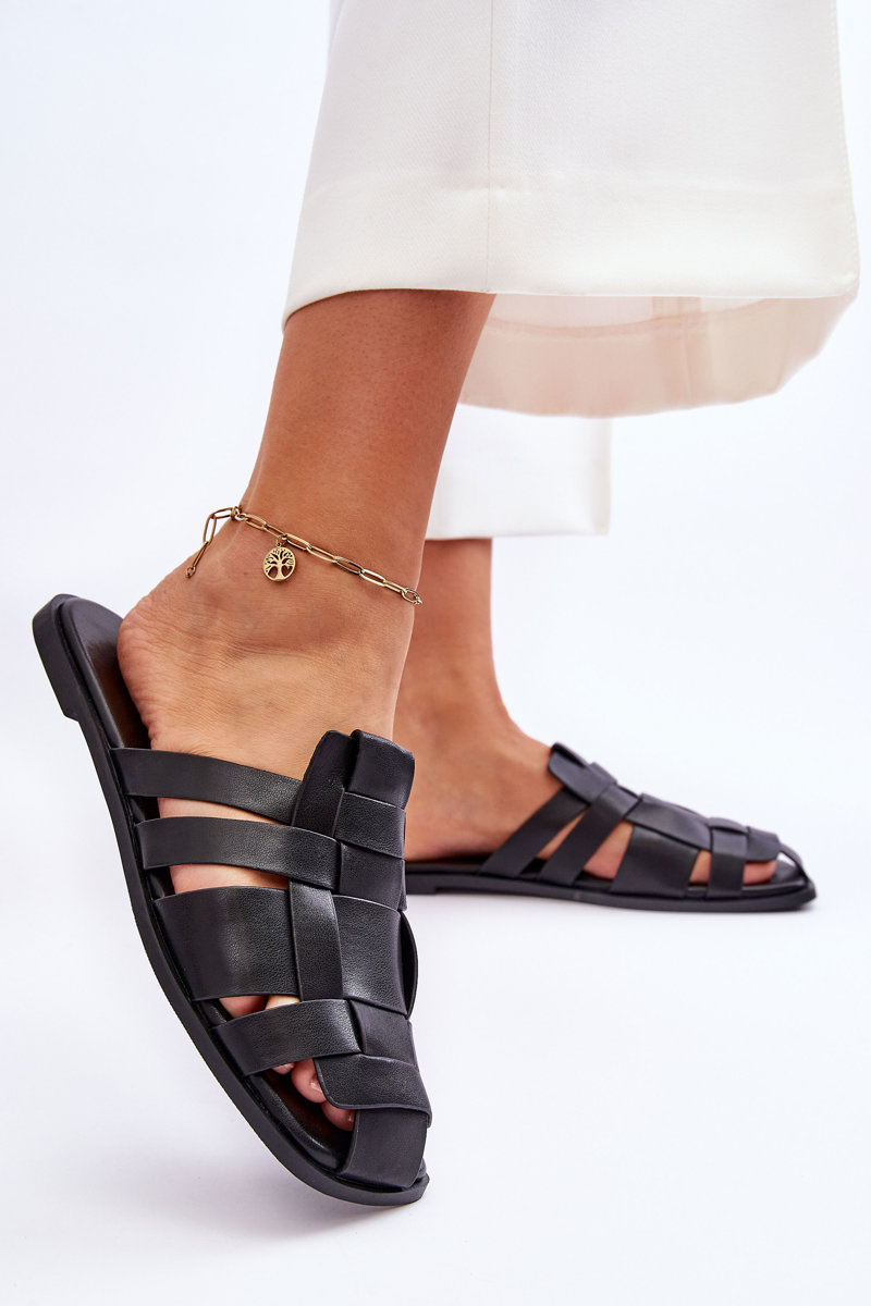 Класичні жіночі тапочки виготовлені з еко шкіри. Ця модель сліпони з частково закритим носом. Встановлені на плоску п'яту і гумову нековзку підошву. М'яка устілка також з еко шкіри. Ця модель ідеальна для спекотних днів! Ви обов'язково повинні їх мати! При виборі розміру скористайтеся таблицею розмірів.