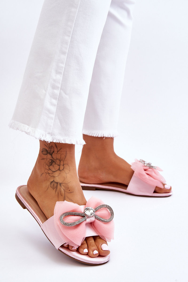 Жіночі тапочки з бантом і стразами Рожеві Jolene
