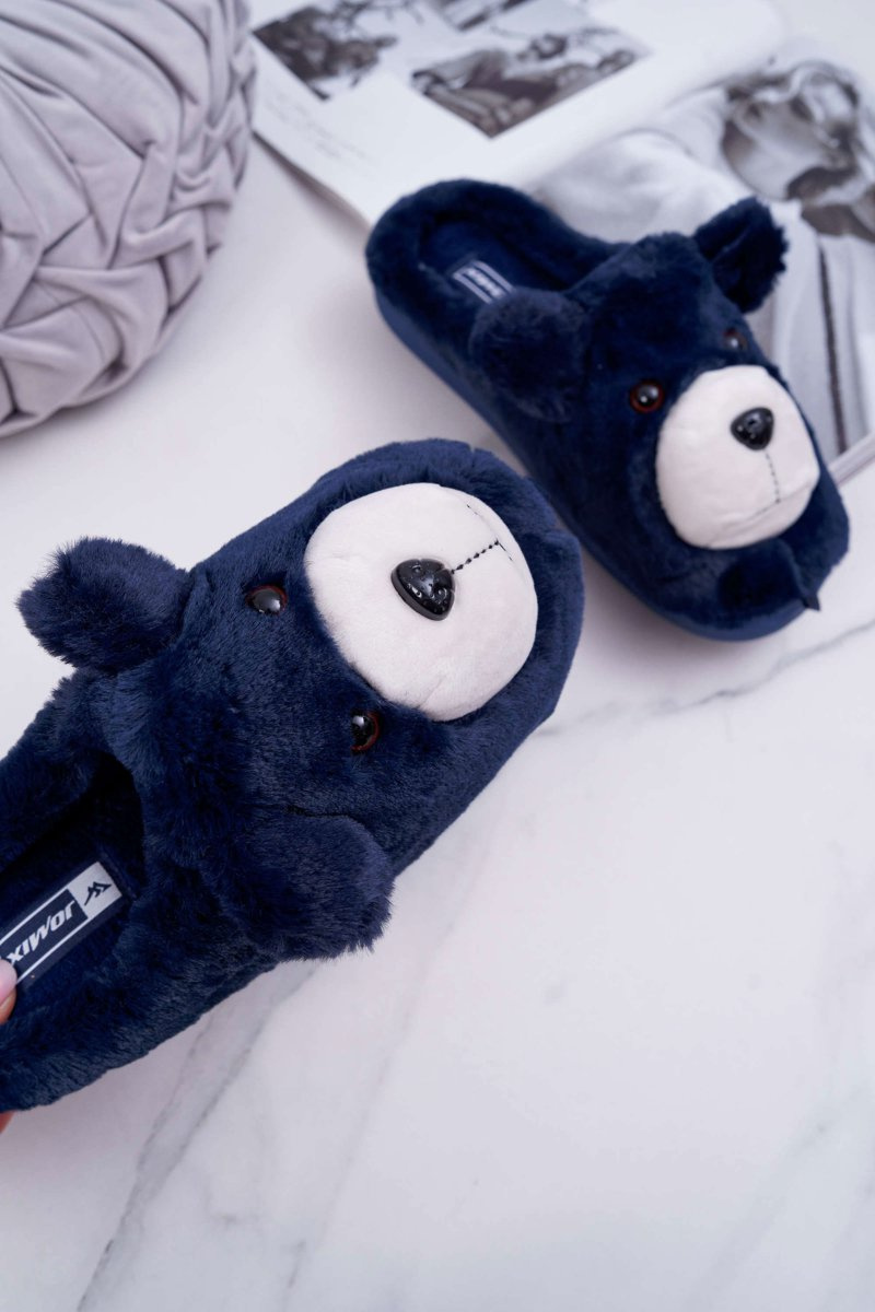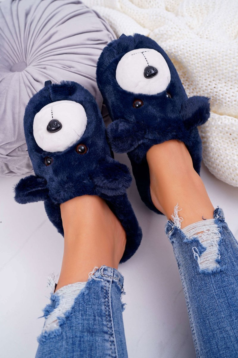 Жіночі тапочки з хутром Ведмедик Темно-синій
