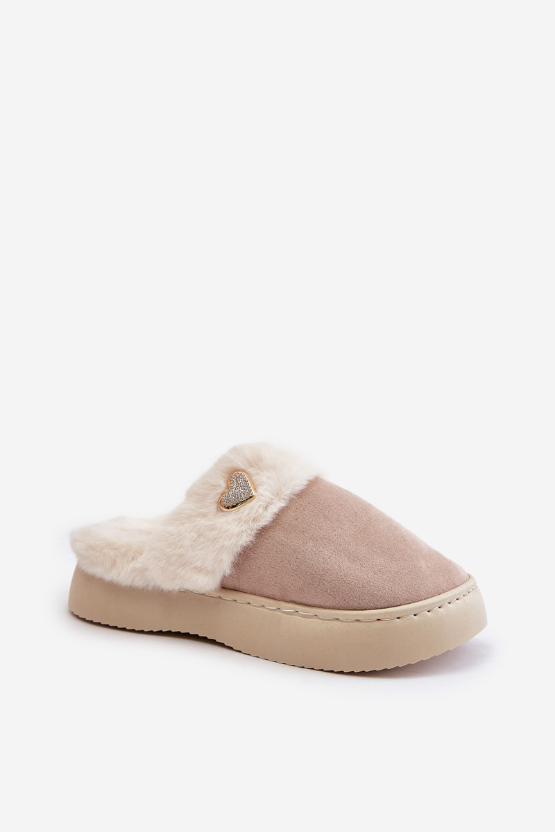 Жіночі тапочки з хутром і декоративним сердечком, бежевий Otielo