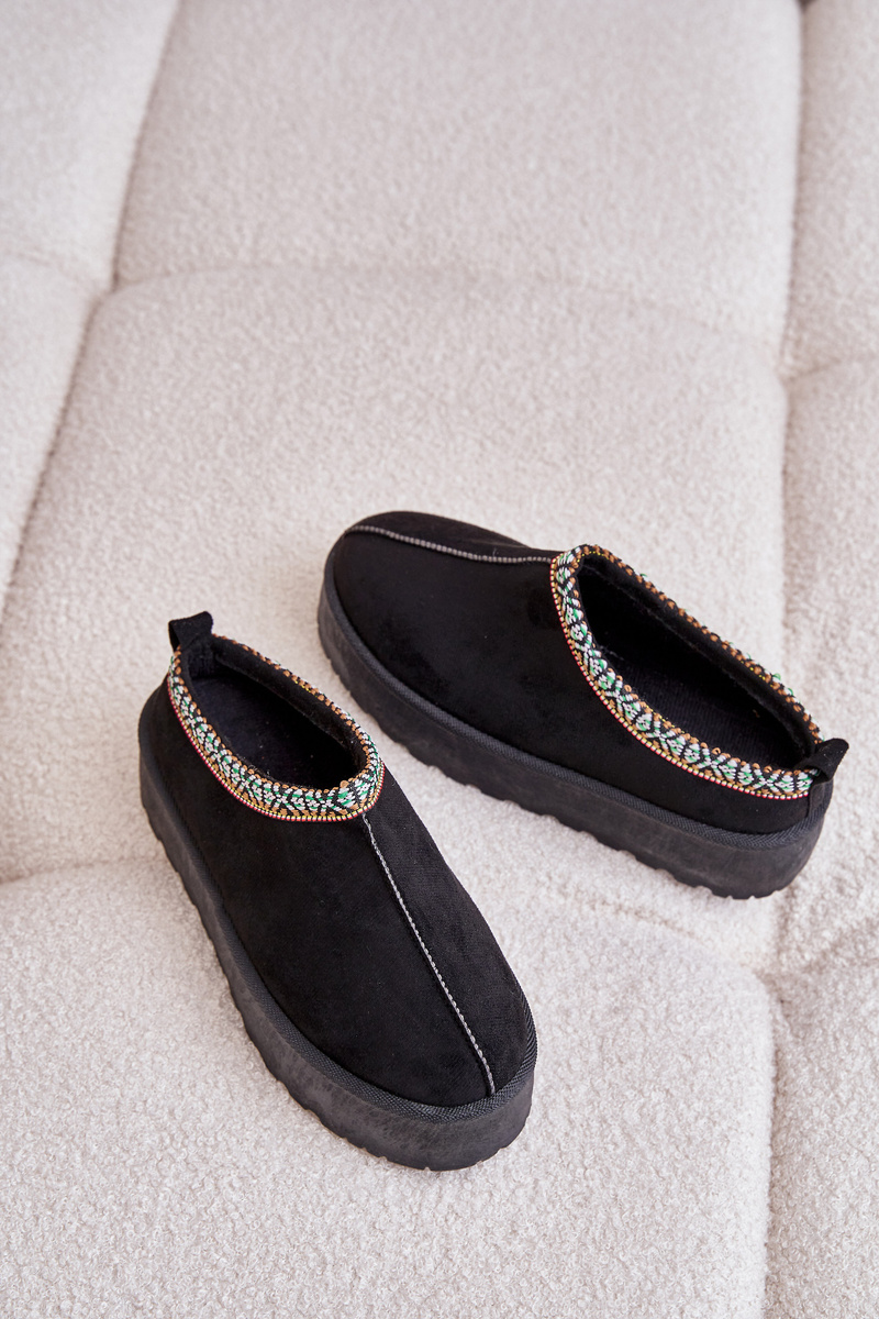Жіночі тапочки на платформі з вишивкою чорного кольору Neroma