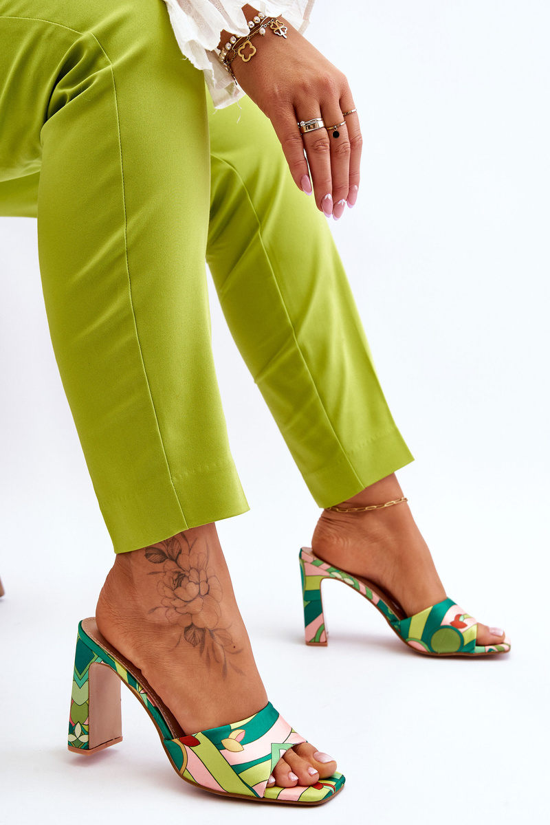 Жіночі тапочки на підборах з візерунком зелені Adelise