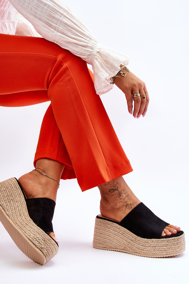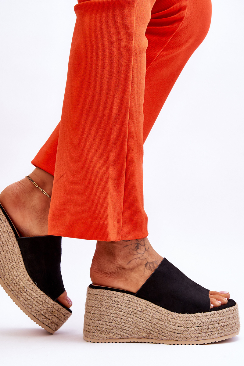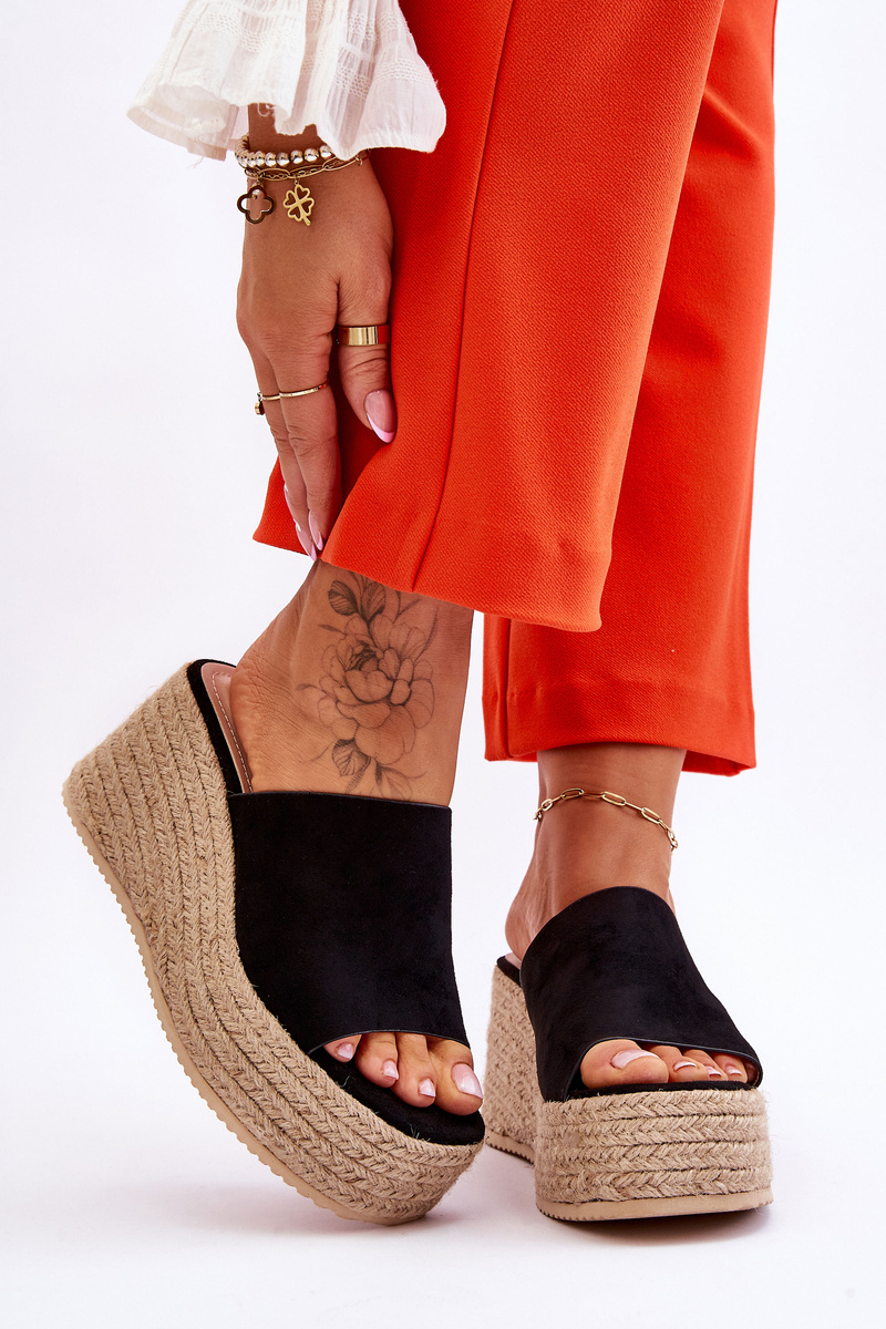 Жіночі тапочки на танкетці та платформі чорні Ysabel