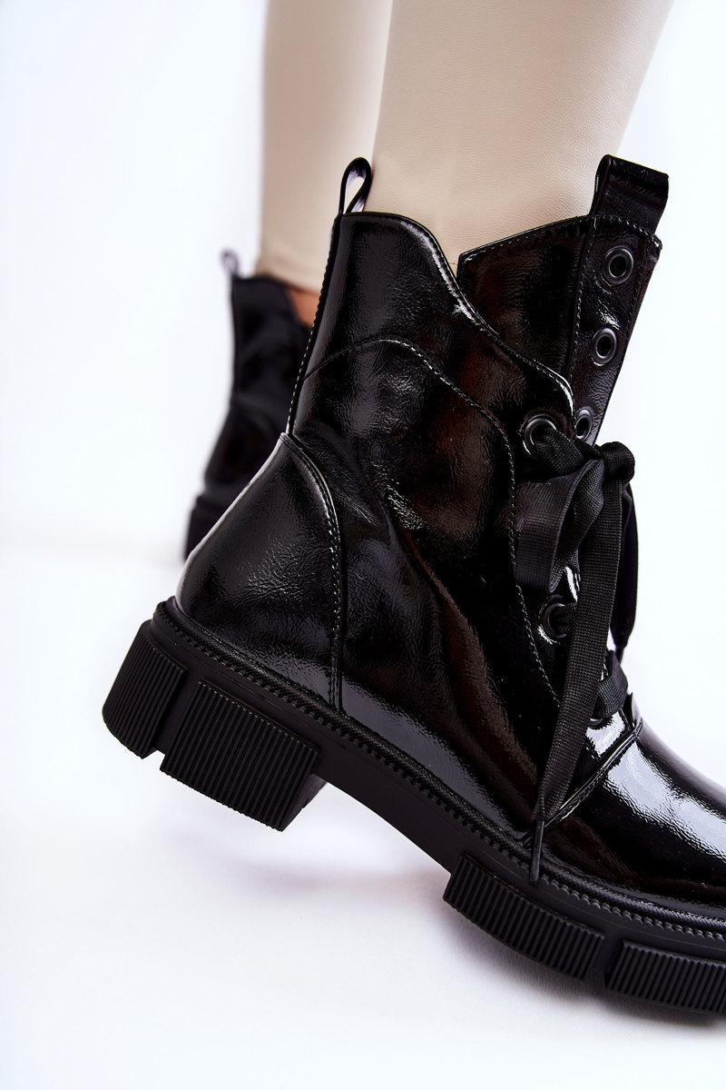 Жіночі теплі лаковані черевики Workers Black Efemia