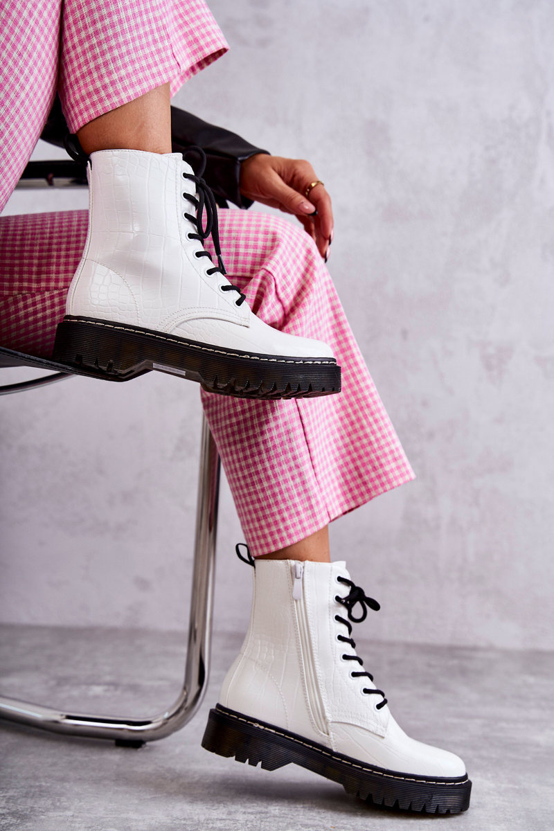 Жіночі теплі черевики зі зміїної шкіри білі Salma