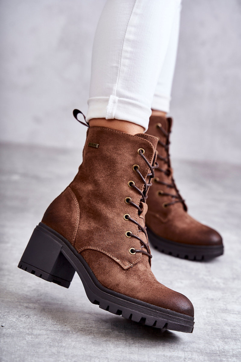 Жіночі теплі черевики на високому каблуці коричневого кольору Grethe