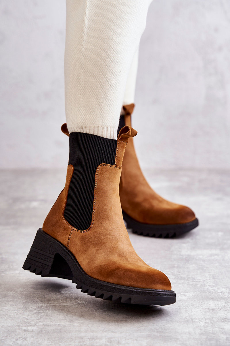 Чоботи жіночі виготовлені з еко шкіри. Мають утеплювач у вигляді ковдри для взуття. Верх закривається збоку на блискавку. Комплект на платформі і каблуці у вигляді масивної стійки з виїмками. Каблук у цих черевиках посилений. Черевики мають квадратний носок. У верхній частині верху є петлі для полегшення одягання та зняття взуття. При виборі розміру скористайтеся таблицею розмірів.