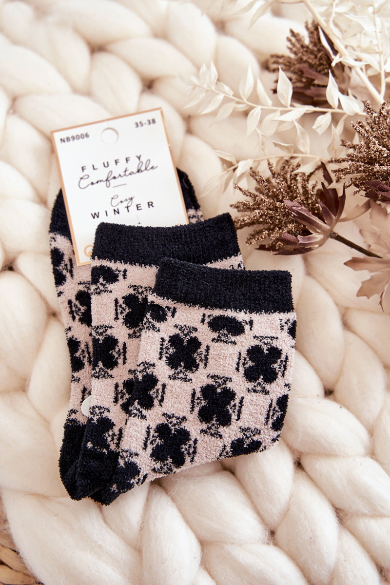 Жіночі теплі шкарпетки з візерунками бежево-чорні