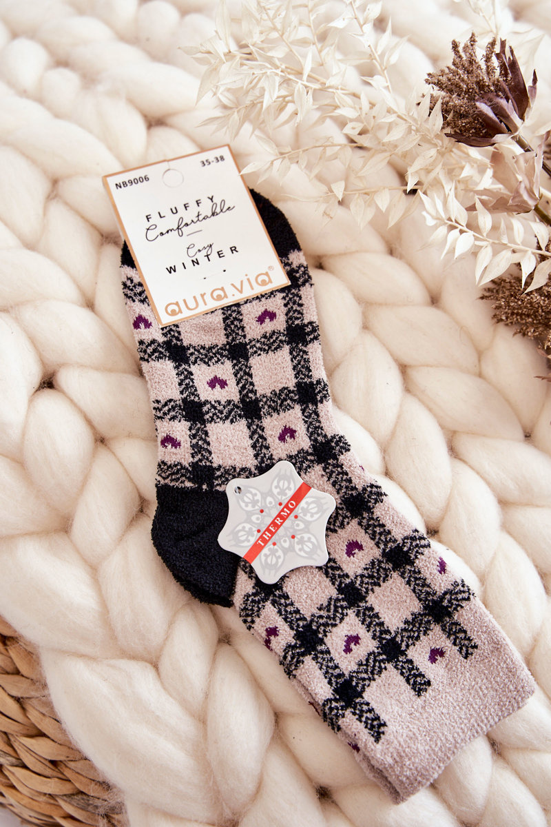 Жіночі теплі шкарпетки решітка Бежево-чорні