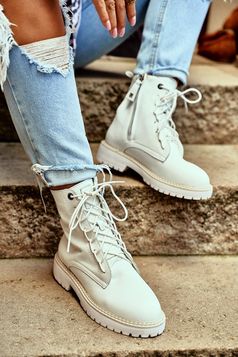 Будьте готові до холодних днів із найновішими траперами Big Star! Відчуйте себе модним стилістом у цьому прекрасному білому! Зовнішня частина взуття виготовлена ​​з натуральної шкіри найвищої якості, яка своєю м'якістю огорне вашу ногу. Внутрішня частина траперів обшита тканиною. Чоботи можна надягати дуже просто і швидко завдяки блискавці. Щоб не позбавляти взуття елегантності, виробник також передбачив можливість зав’язувати взуття шнурками. Ви обираєте, як ви їх одягнете! Від холоду захистить підошва 4 см. Більш жіночної моделі траперів ви не знайдете, купуйте вже сьогодні! При виборі розміру скористайтеся таблицею розмірів.