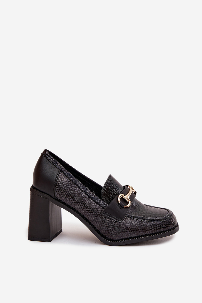 Жіночі туфлі на каблуку з тисненням та золотим деталлю Чорні Novella