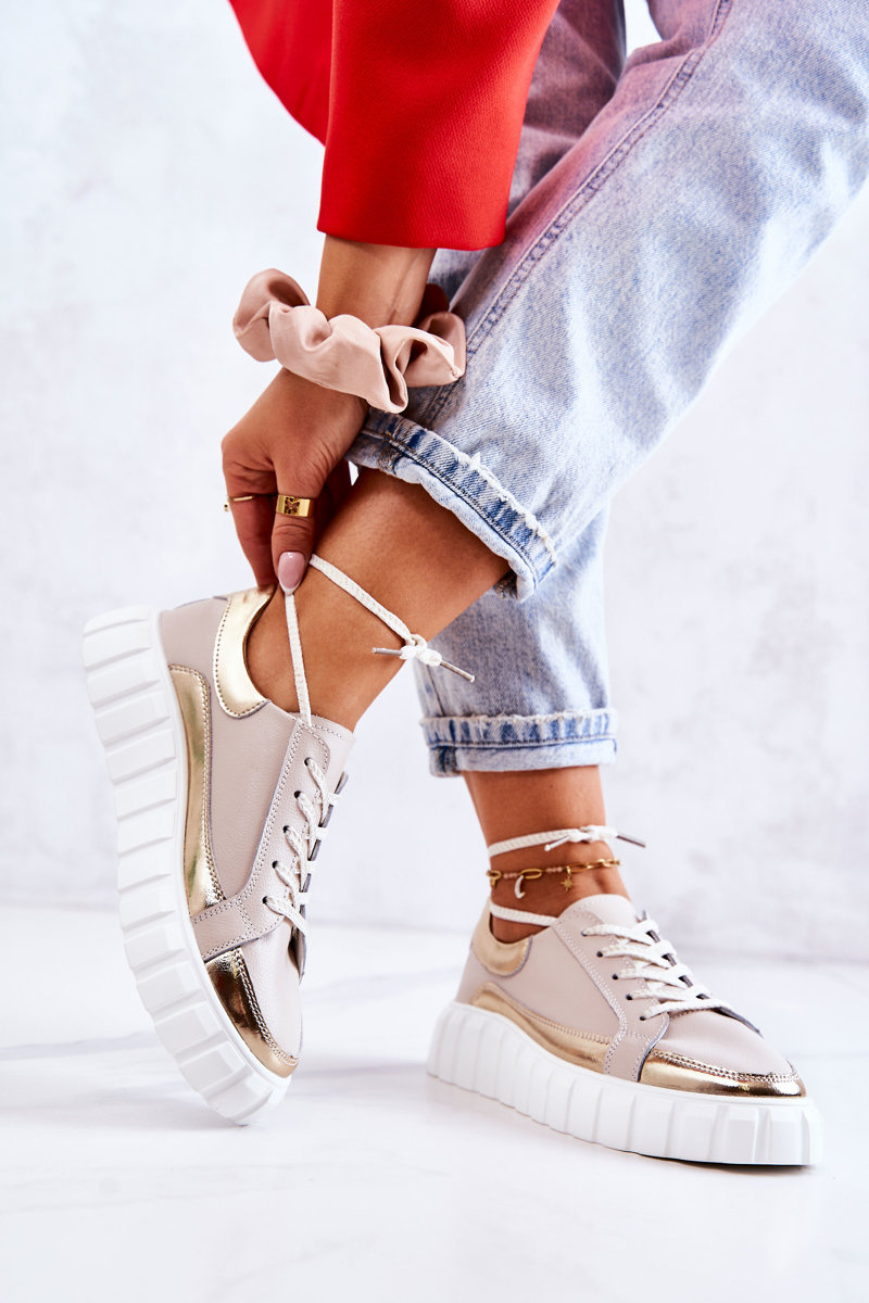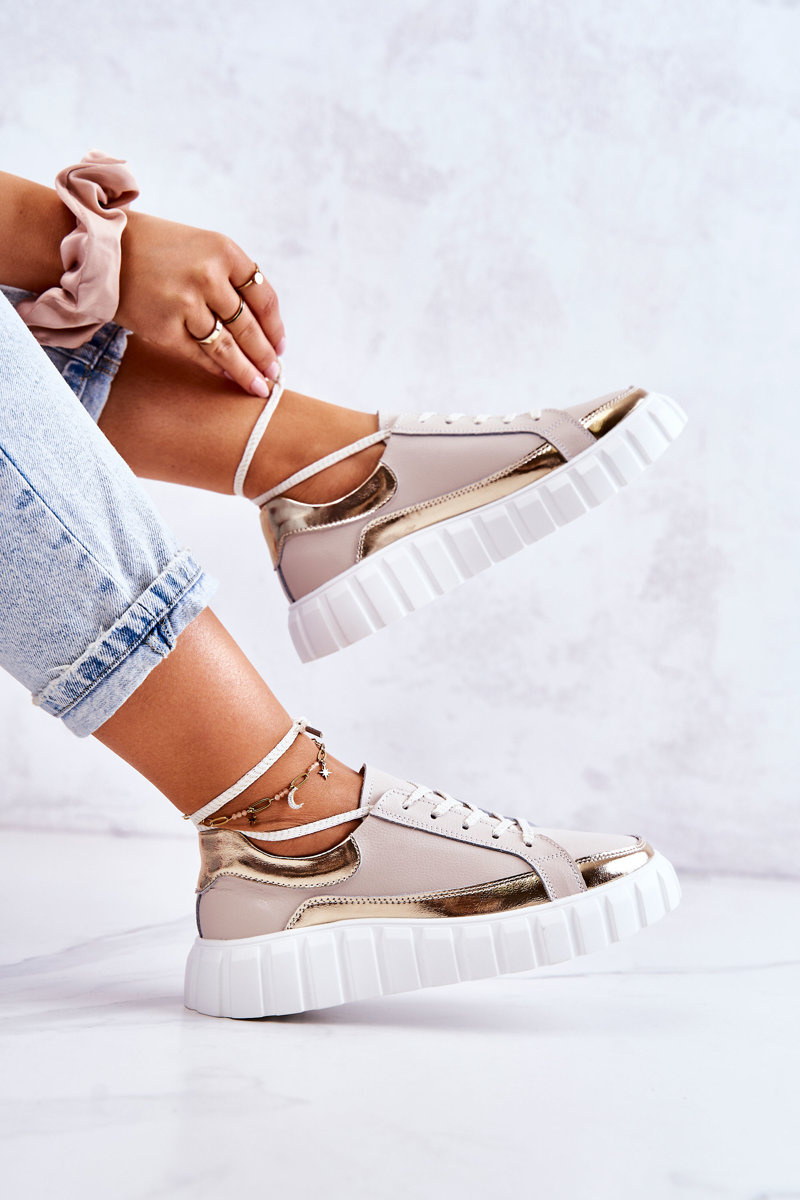 Жіночі туфлі на платформі бежево-золоті Noriso