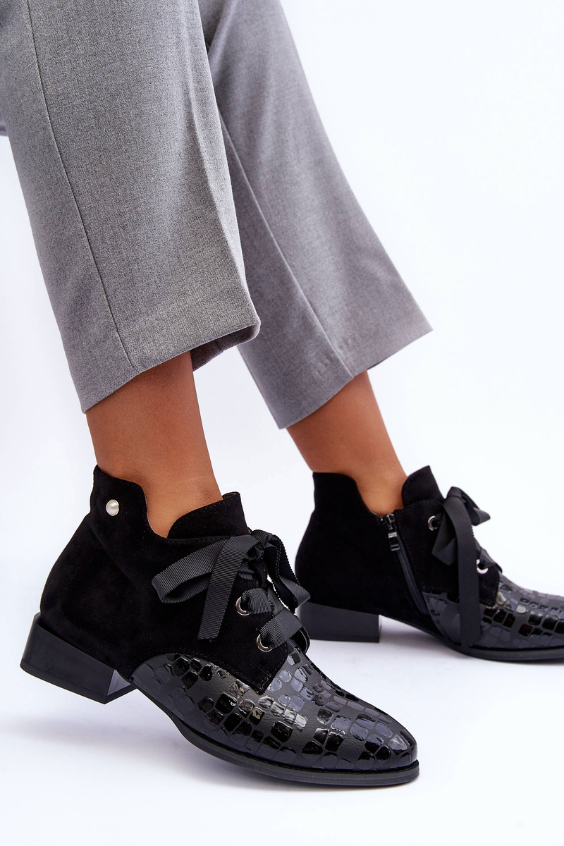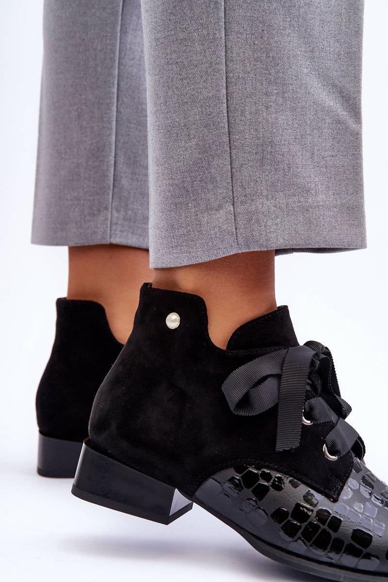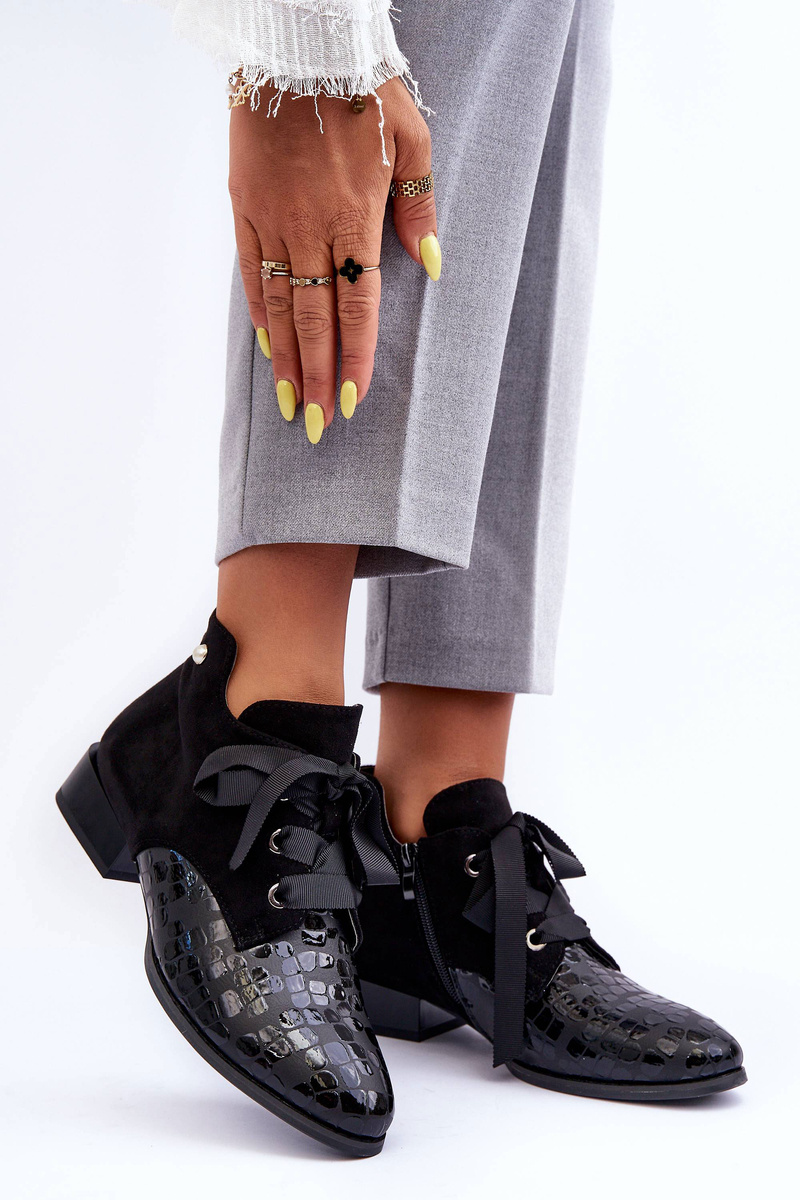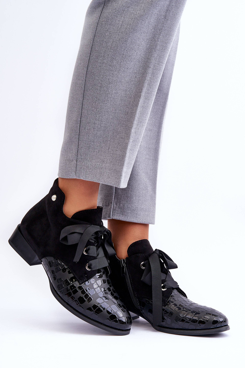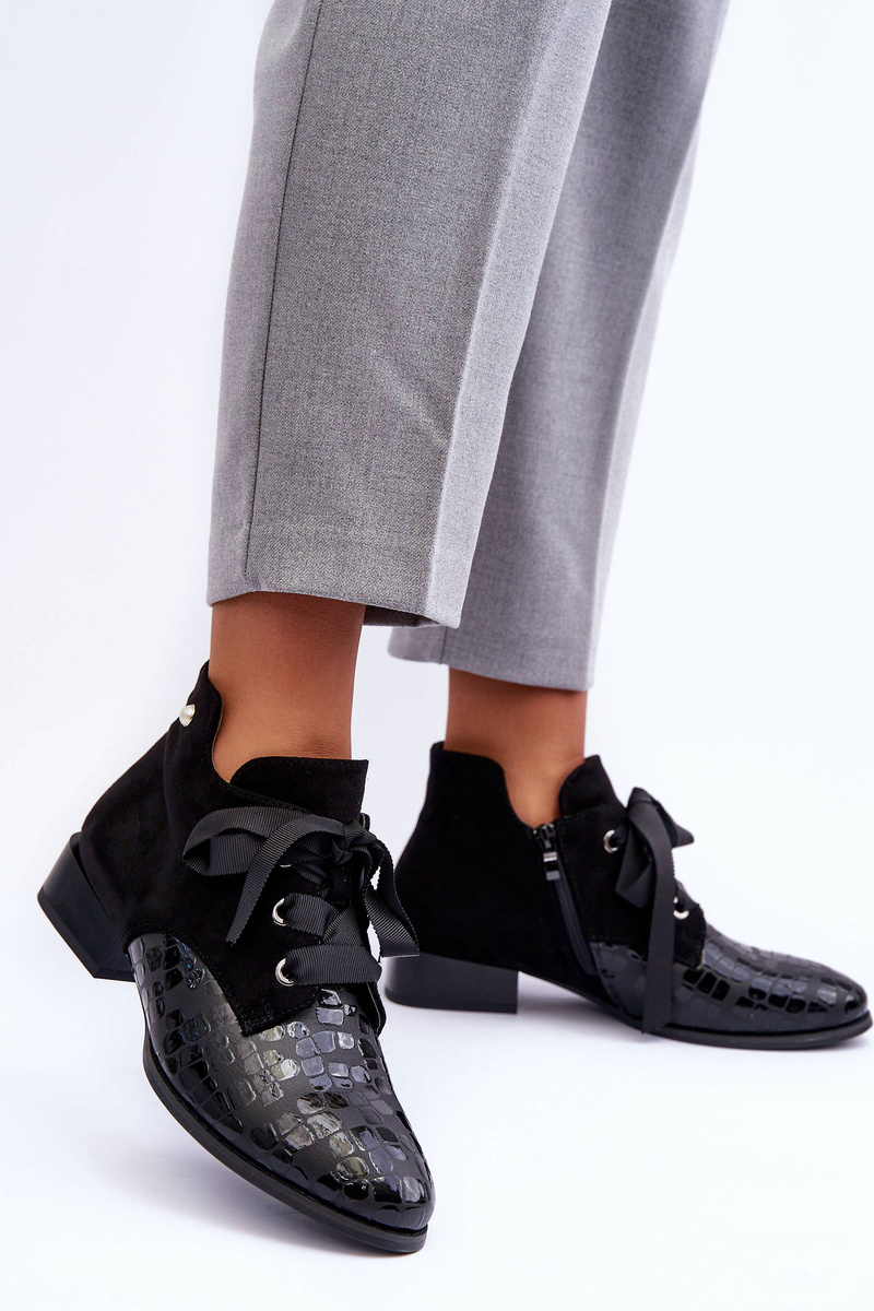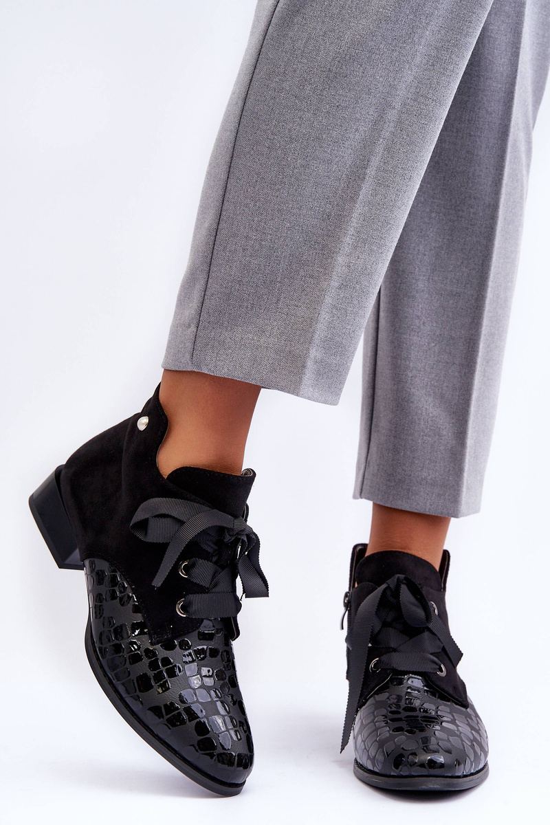 Жіночі туфлі на плоскій каблуці зі шнурівкою чорного кольору Meroni