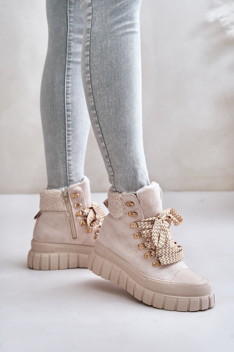 Жіночі ботильйони з еко-замші. Встановити на платформі, яка ідеально ізолює від холодної землі. Модель оснащена шнурівкою і додатковою застібкою-блискавкою. Утеплені взуттєвим флісом, що забезпечує комфорт і тепло при носінні. Хутро у верхній частині стрижня. Це взуття не тільки стильне, але й функціональне. Ідеально підходить для жінок, які цінують комфорт і модний зовнішній вигляд. Обираючи розмір, орієнтуйтеся на таблицю розмірів.