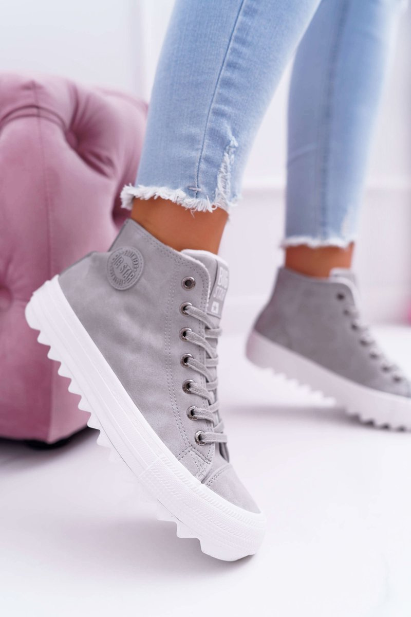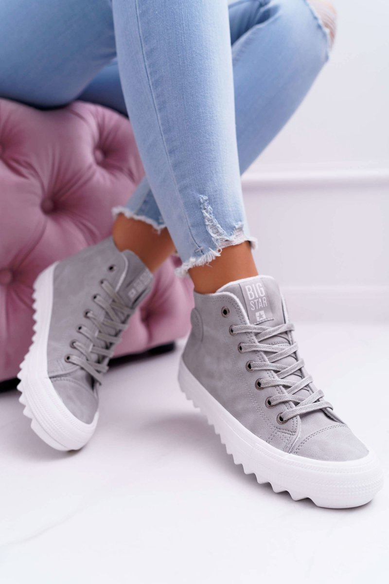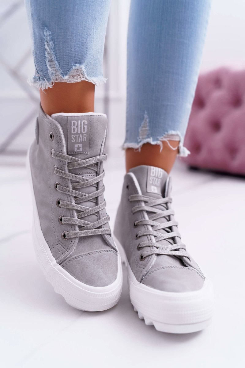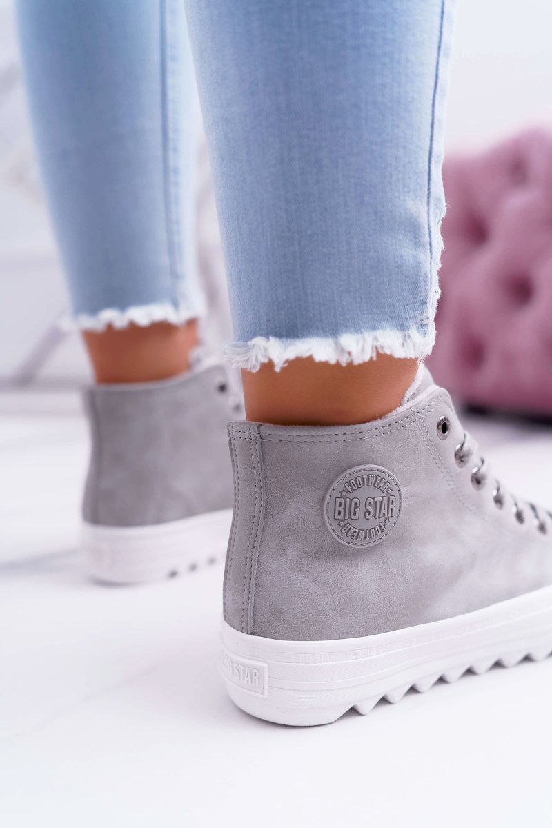 Жіночі утеплені кросівки Big Star на високих підборах сірі EE274114