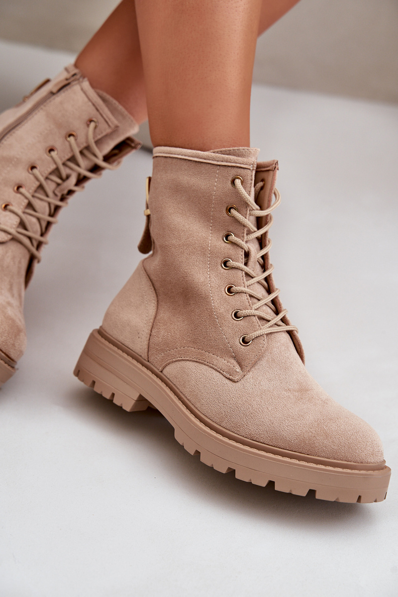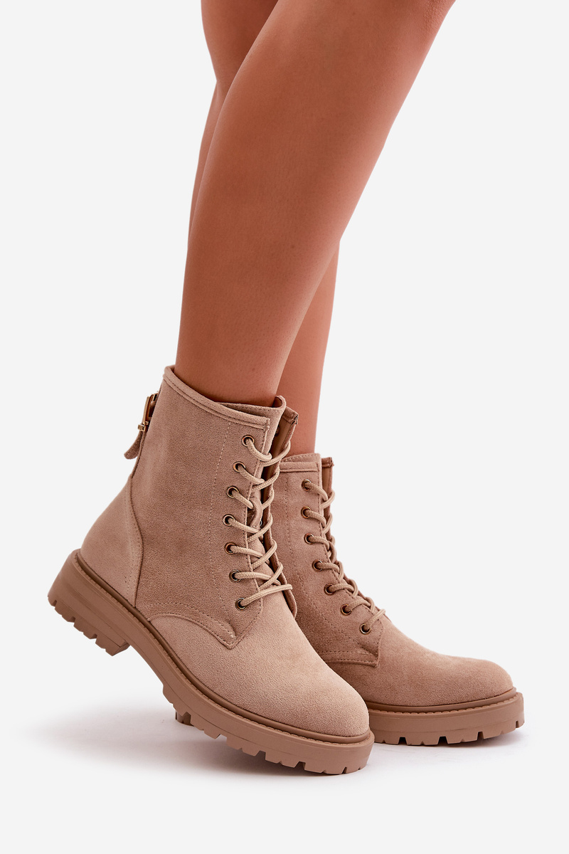 Жіночі утеплені робочі ботильйони на блискавці з екозамші бежеві Mardia