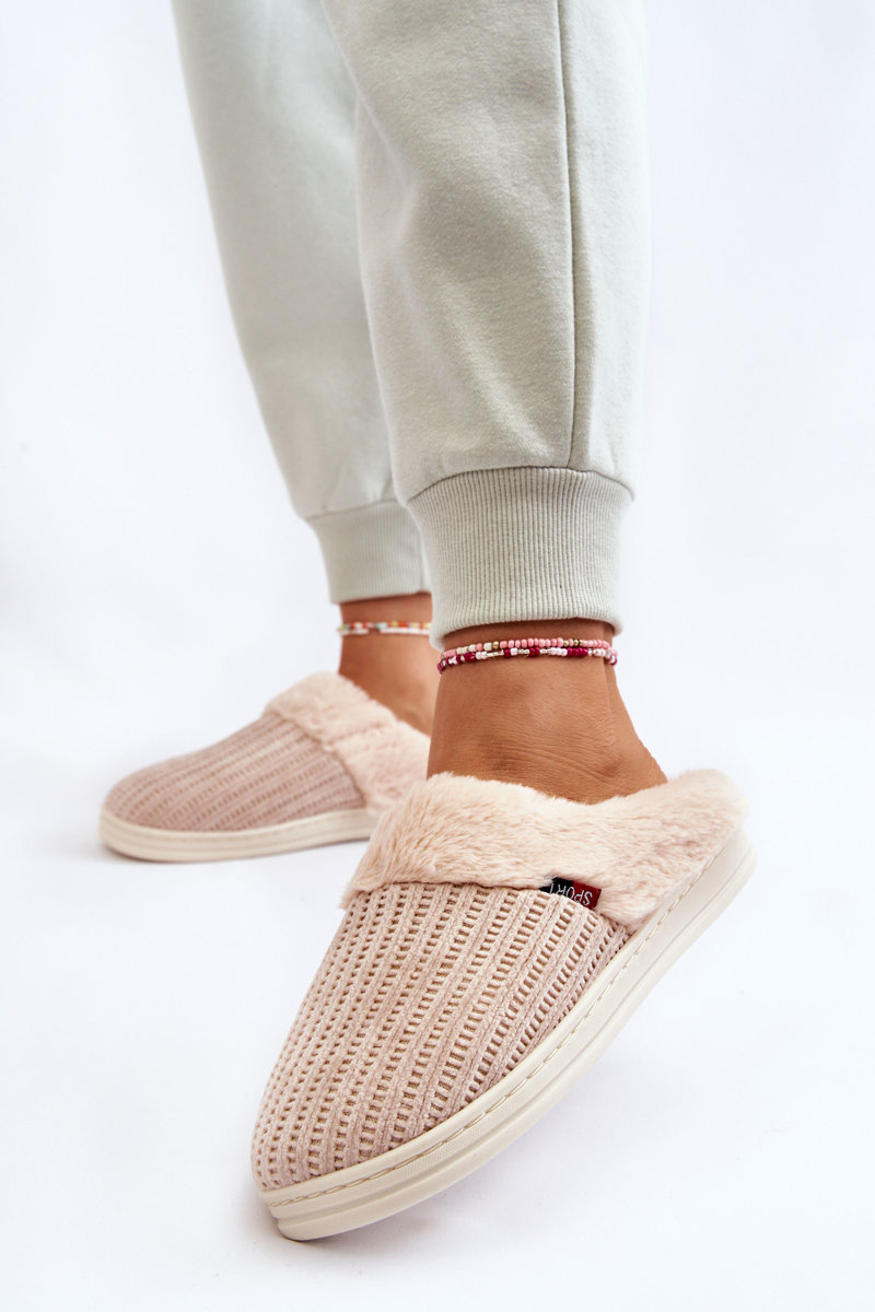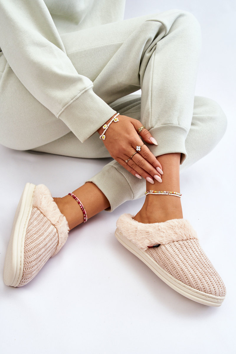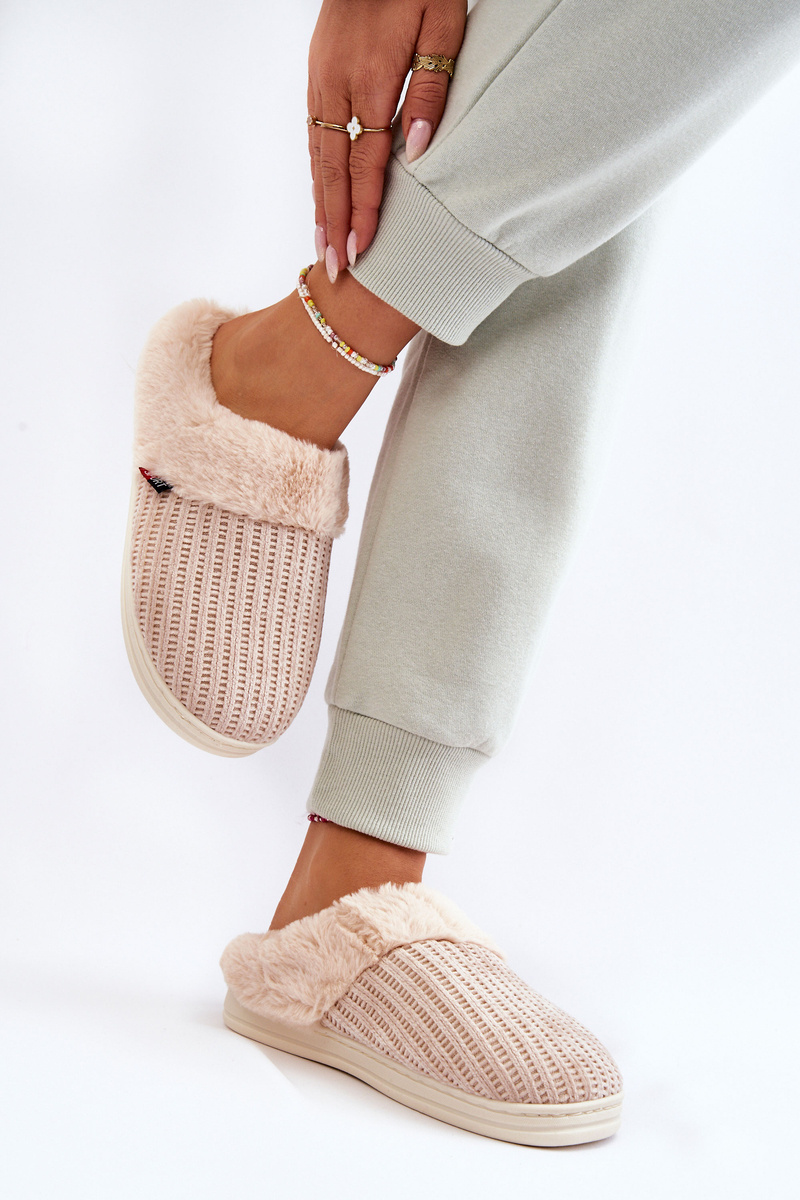 Жіночі утеплені тапочки з хутром бежеві Leriss