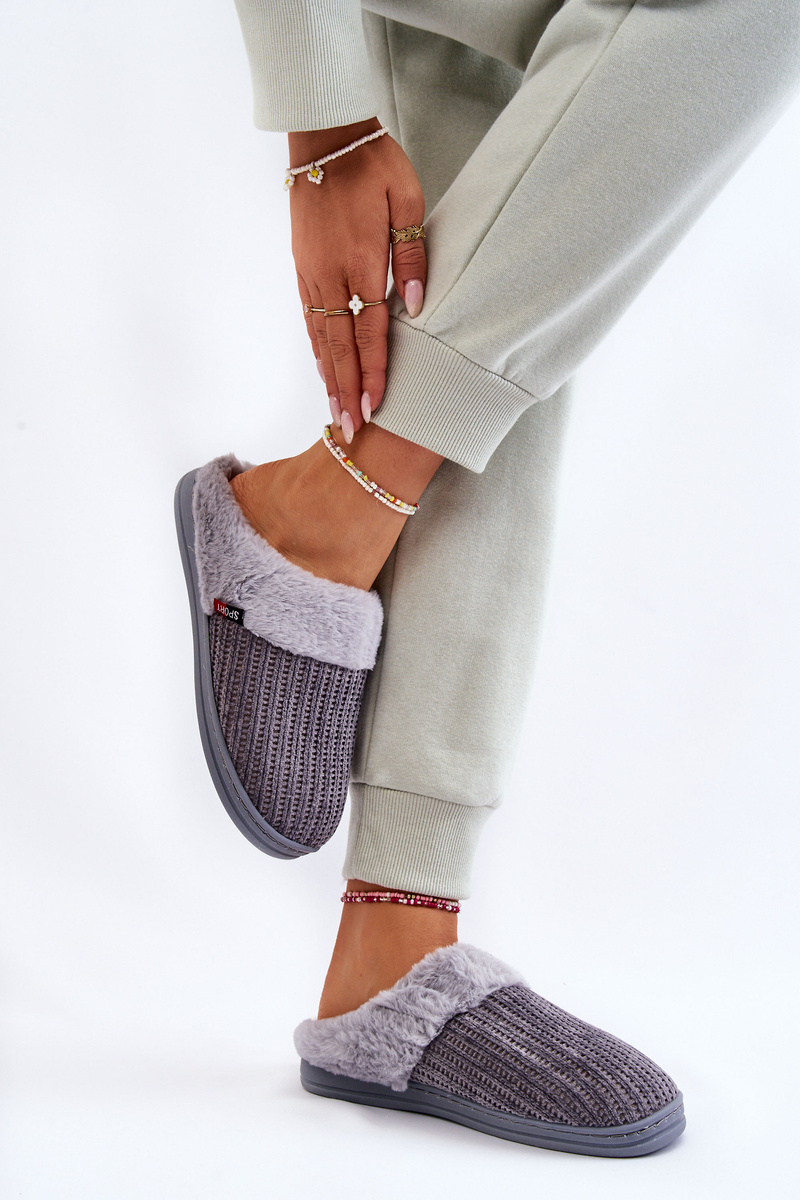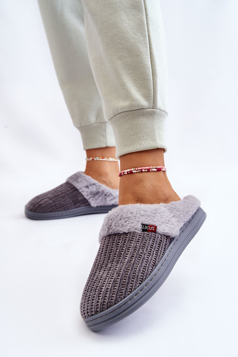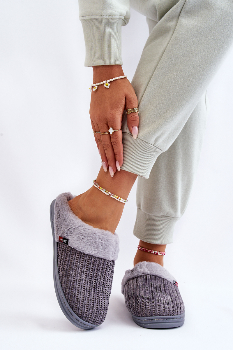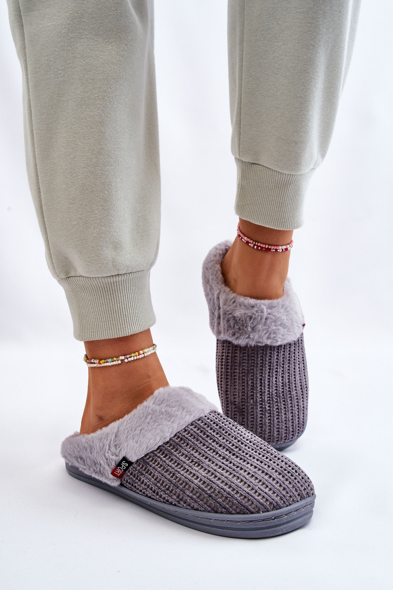 Жіночі утеплені тапочки з хутром Leriss сірі