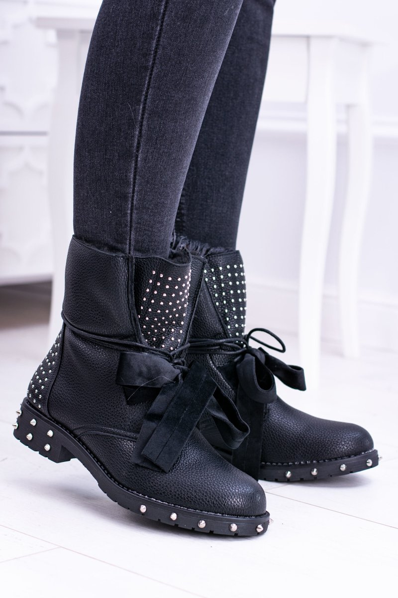 Коханці! У нас для вас чудова новинка! Чудові чобітки на плоскому каблуці. Черевики виготовлені з екологічної шкіри і неодмінно підійдуть до багатьох осінніх і зимових образів. Про наш комфорт подбає товстий утеплений плюшевим ведмедиком салон. Не дивуйтесь і готуйтеся до холодних днів! Стрази та заклепки підкреслюють їхній рок-стиль!
