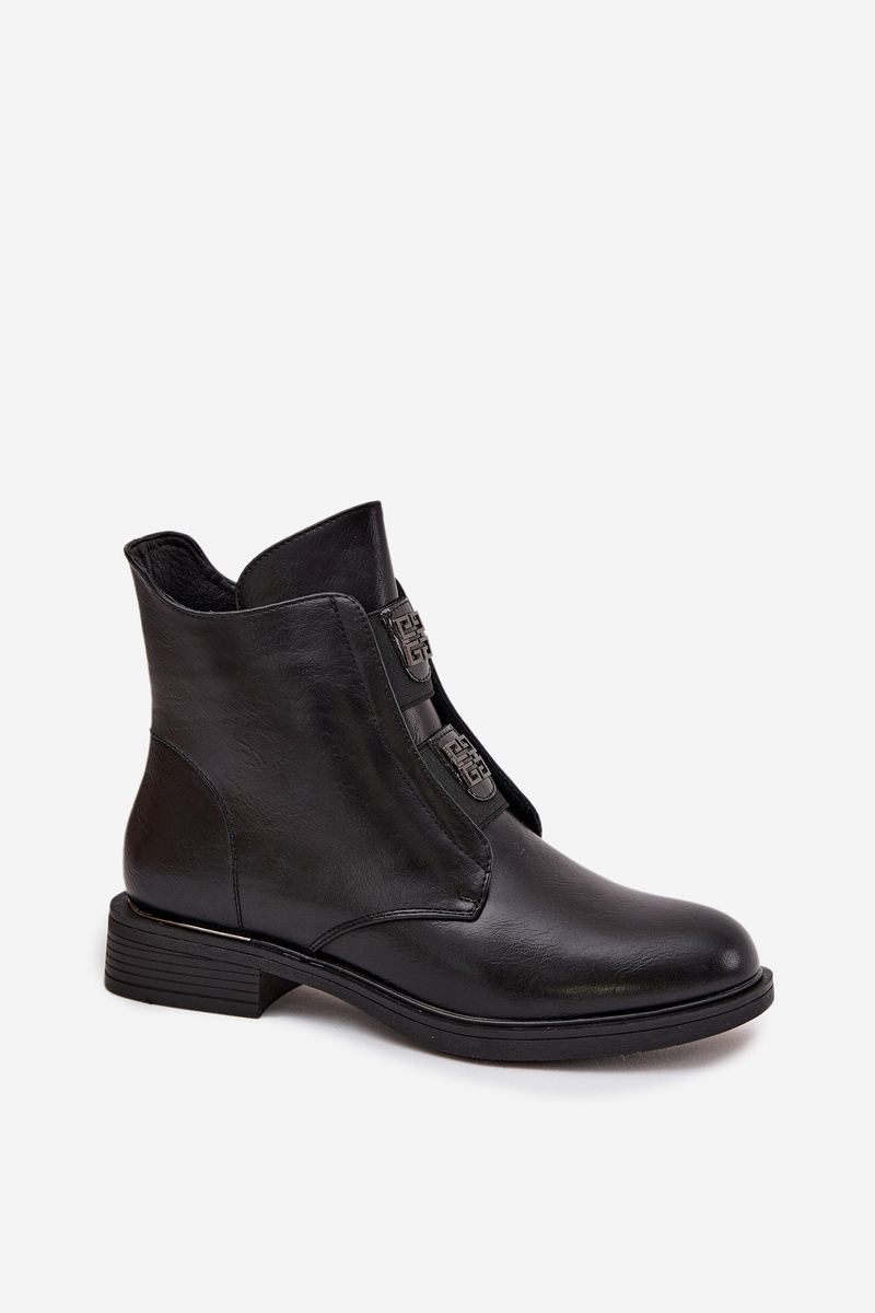 Жіночі утеплені черевики на низькому каблуці з оздобленнями Чорні Tavressa