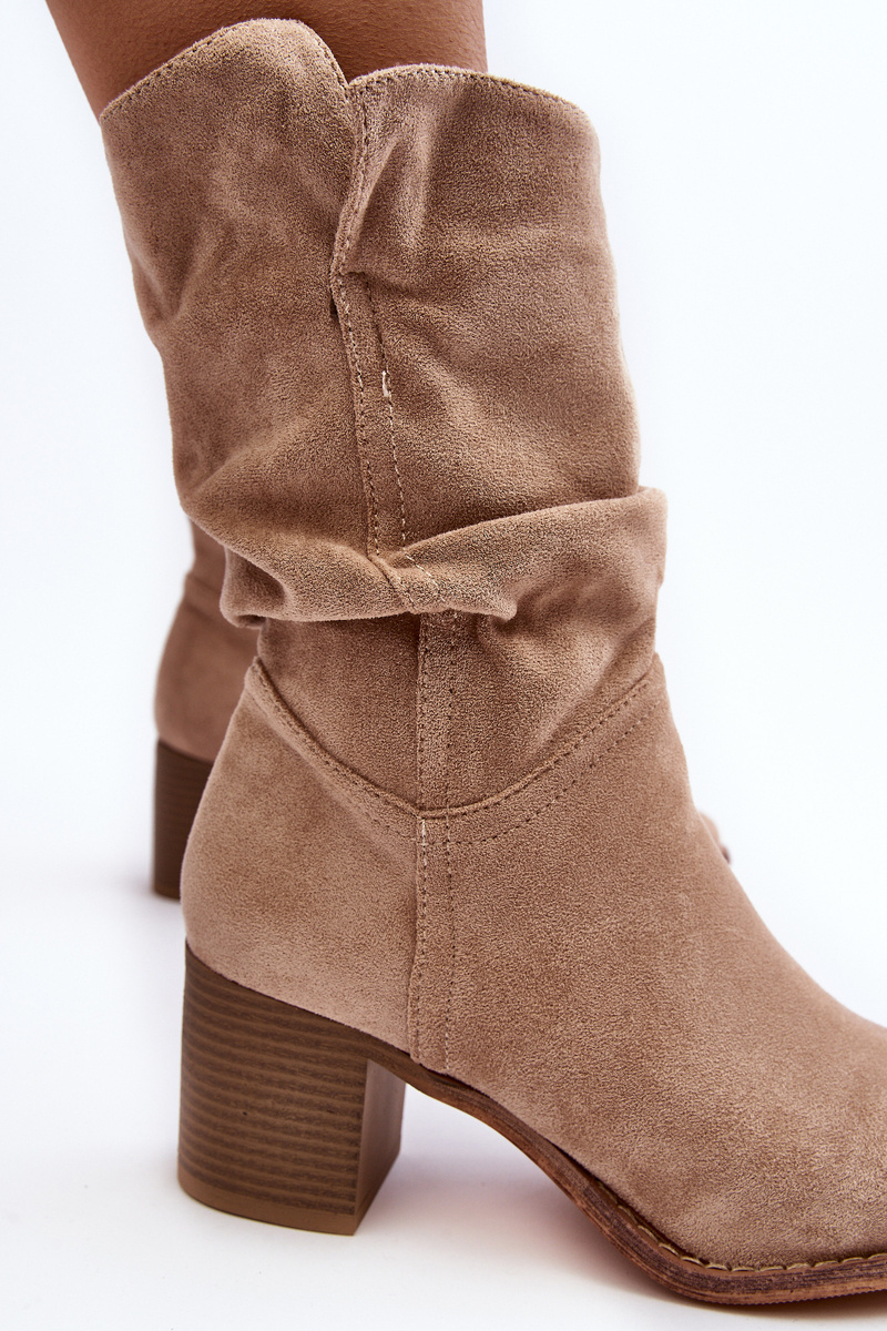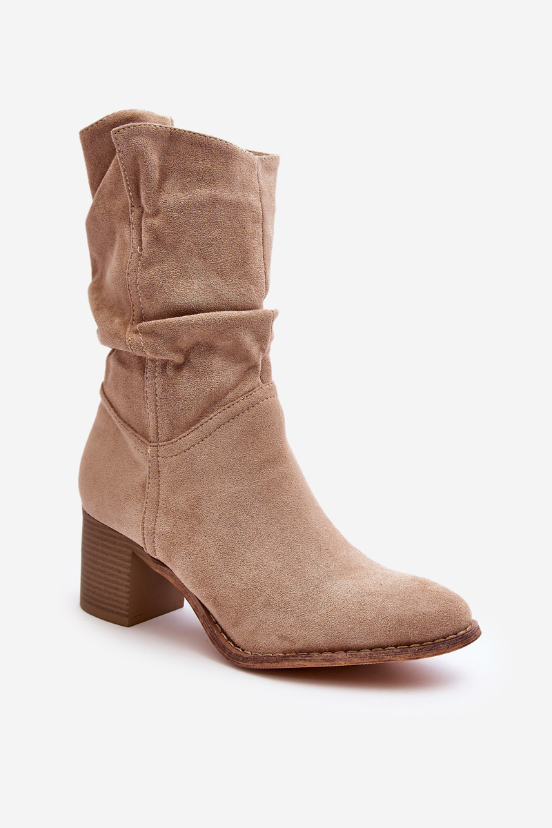 Жіночі утеплені чоботи з рюшами на шпильці бежеві Shavy