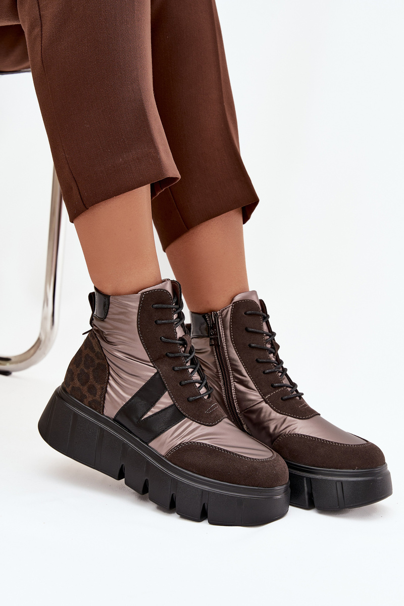 Жіночі утеплені чоботи на платформі Vinceza 58562 коричневі