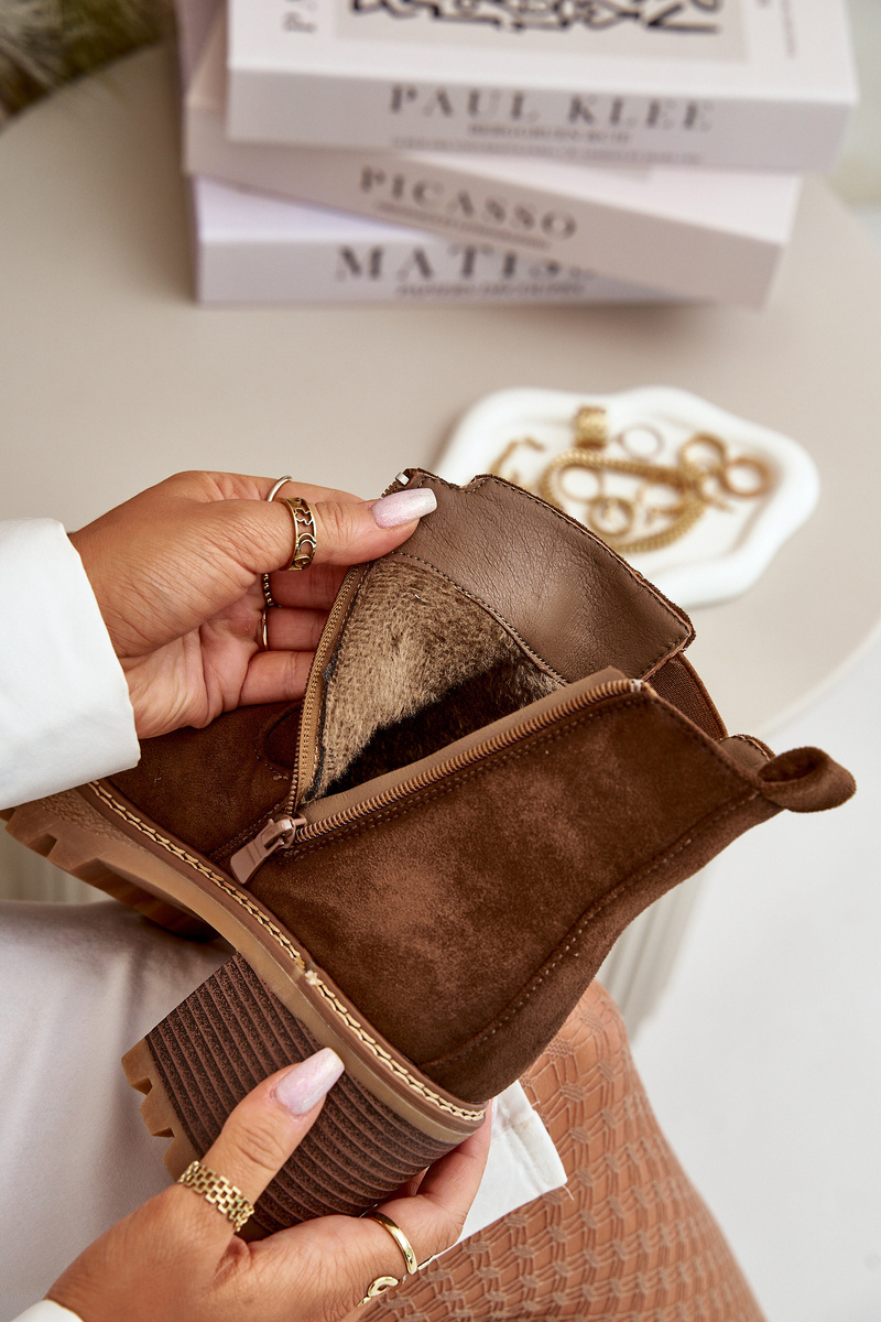 Жіночі утеплені чоботи на підборах з еко-замші коричневого кольору Irissinae