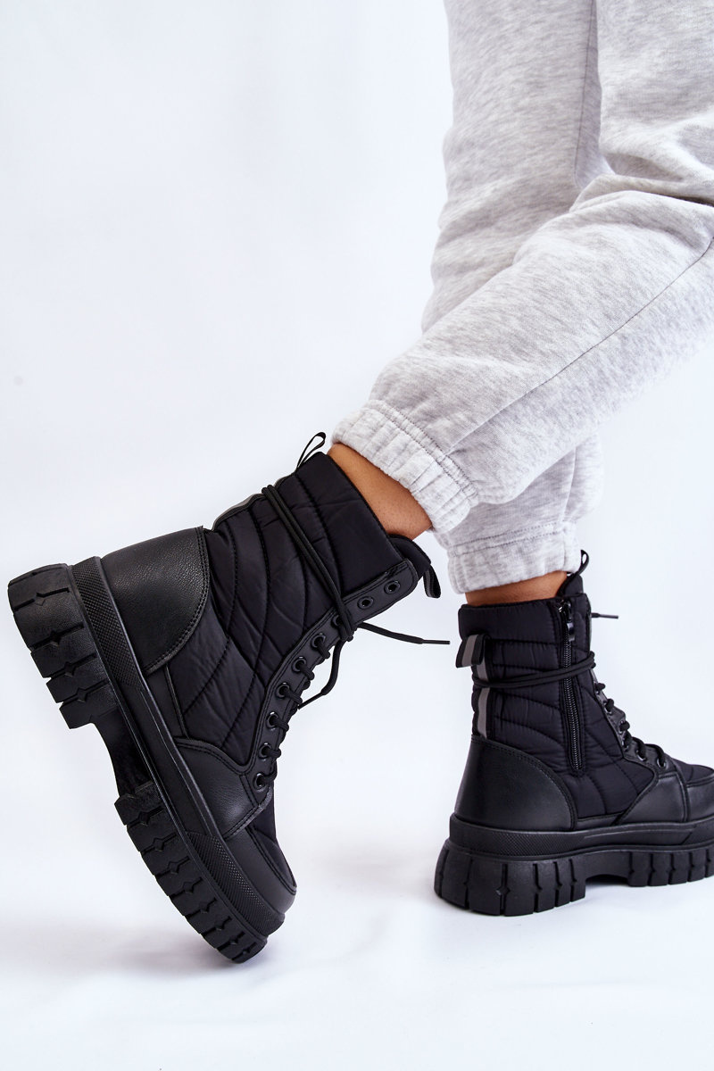 Жіночі утеплювальні черевики на шнурівці Аріадна чорного кольору
