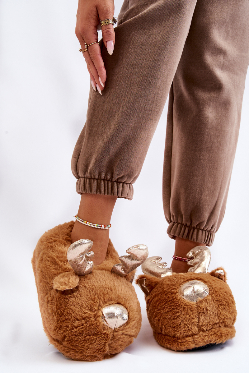 Жіночі хутряні сліпони з оленями світло-коричневого кольору Комета