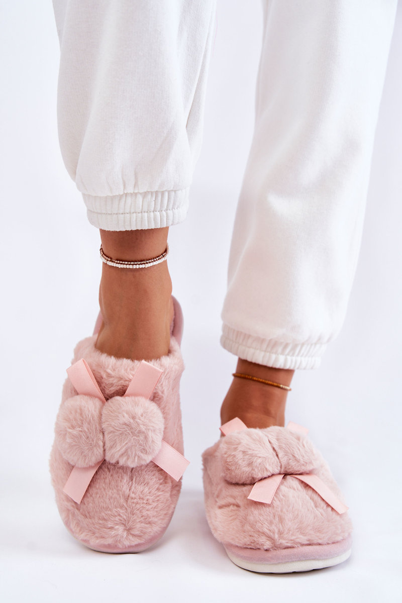 Жіночі хутряні тапочки з помпонами Castello рожеві