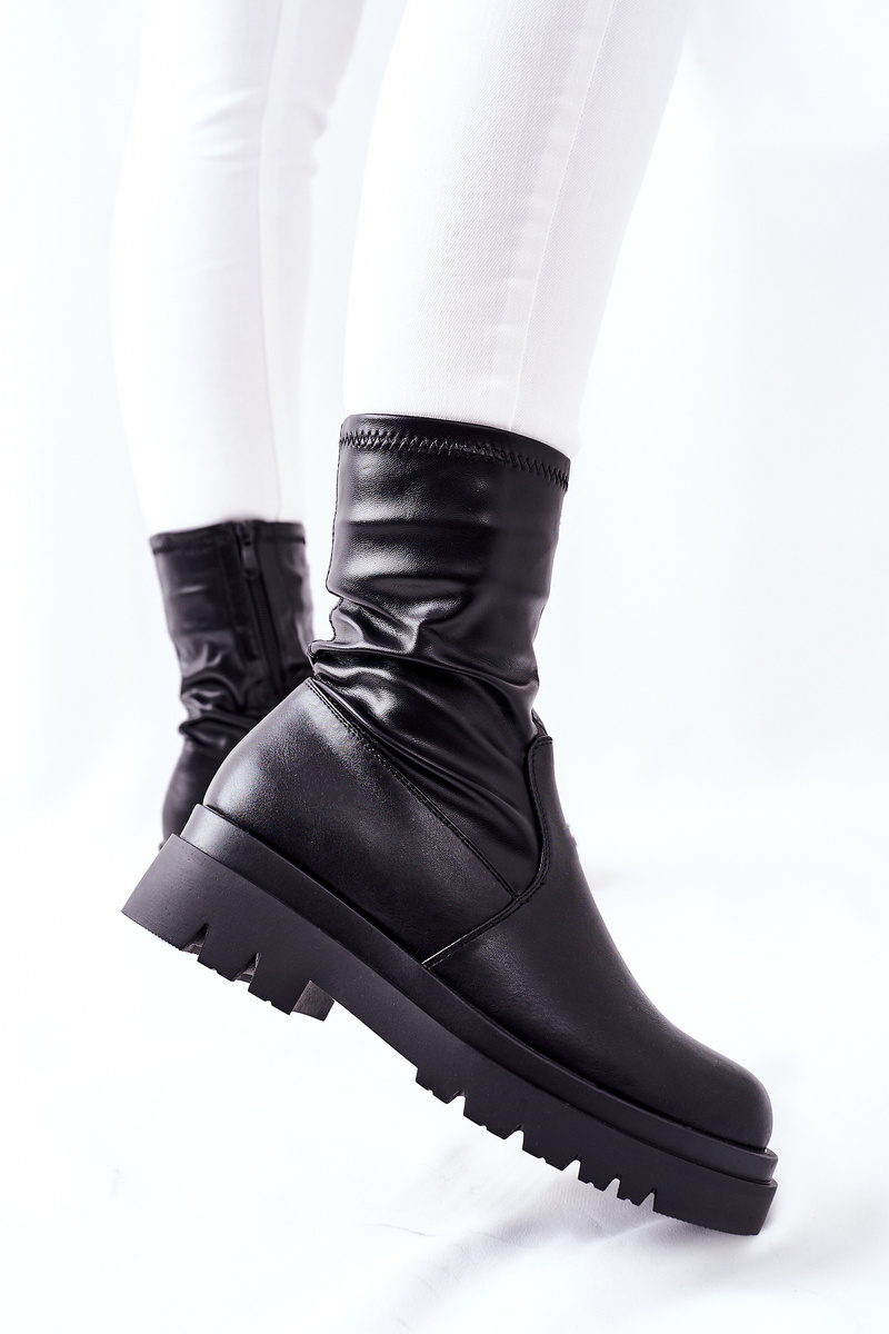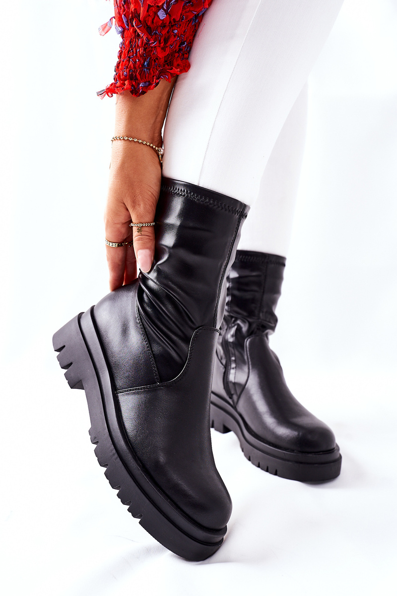 Виняткові черевики з еластичної екошкіри. Масивна платформа і приталений верх стрункість ваших ніжок! Легко надягати завдяки блискавці збоку верху.Будь ласка, зверніться до таблиці розмірів, коли обираєте свій розмір.