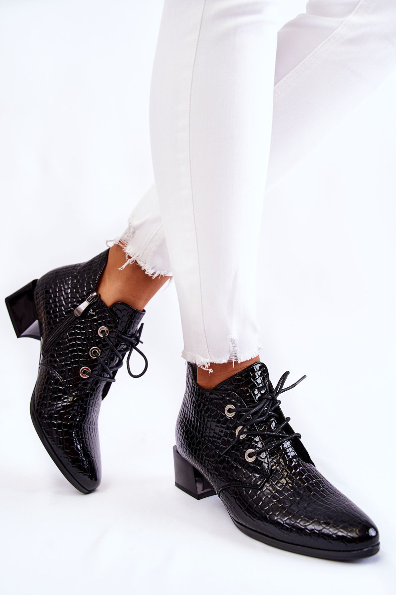 Жіночі черевики з малюнком під крокодила Чорні Farrah