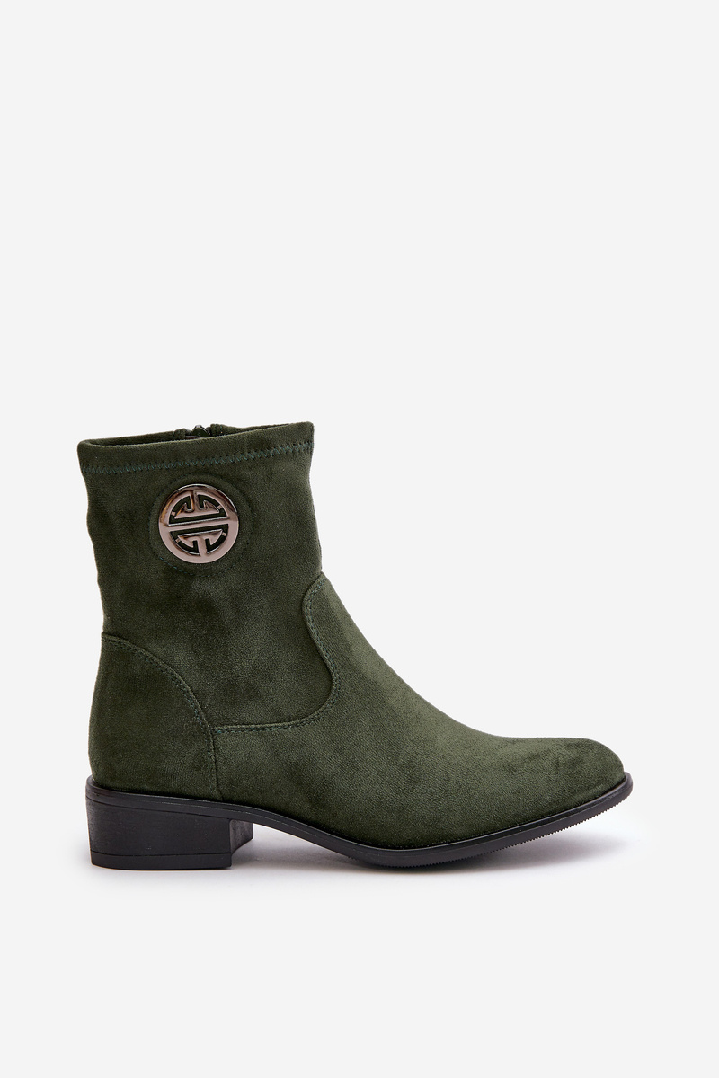 Жіночі черевики на блискавці та декоративній деталі Еко-замша зелена Lerioria