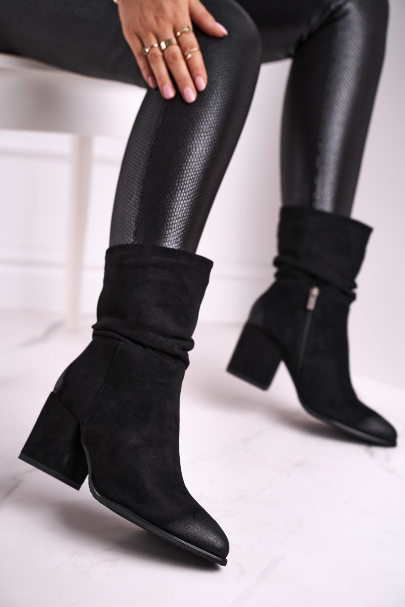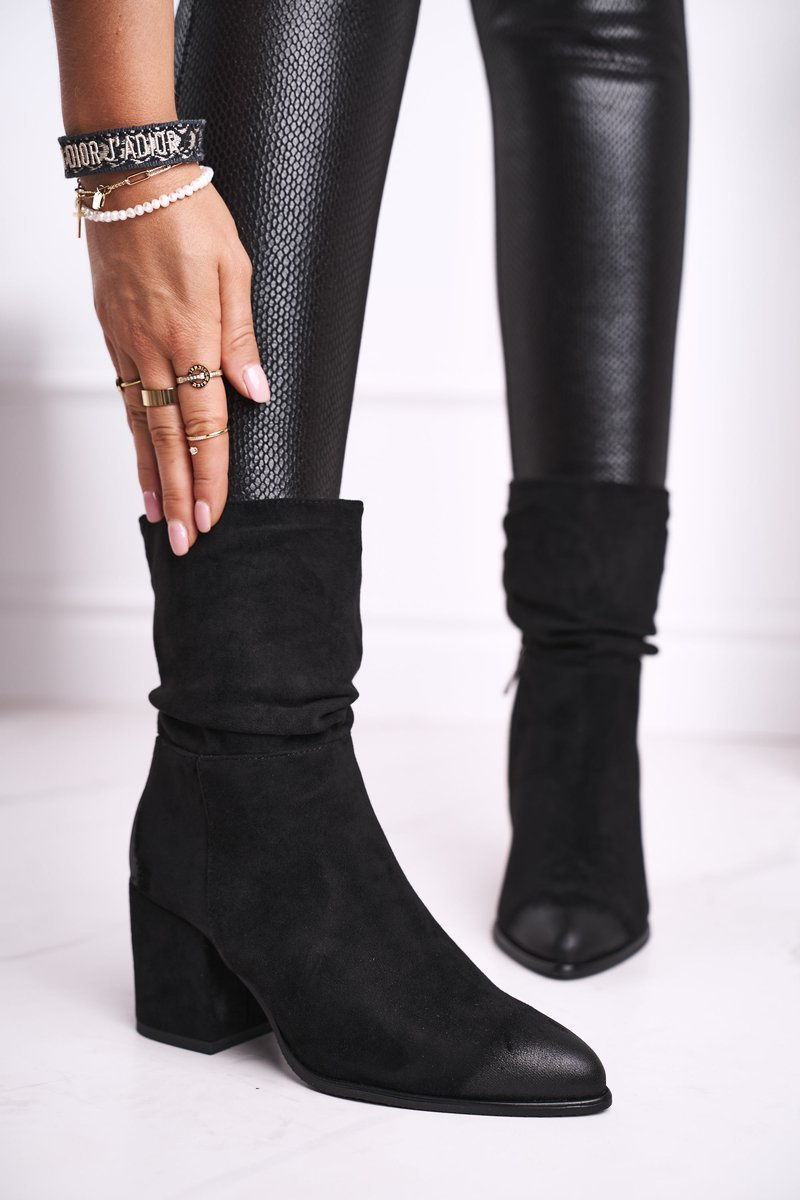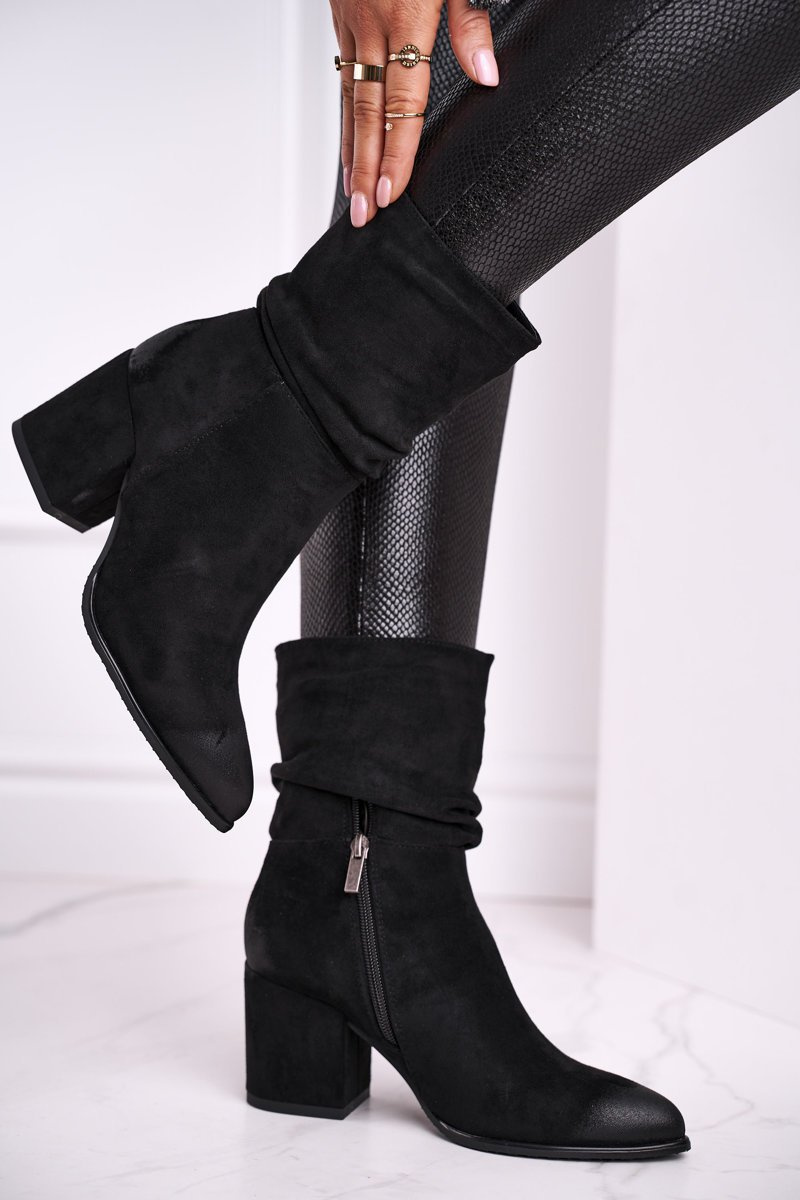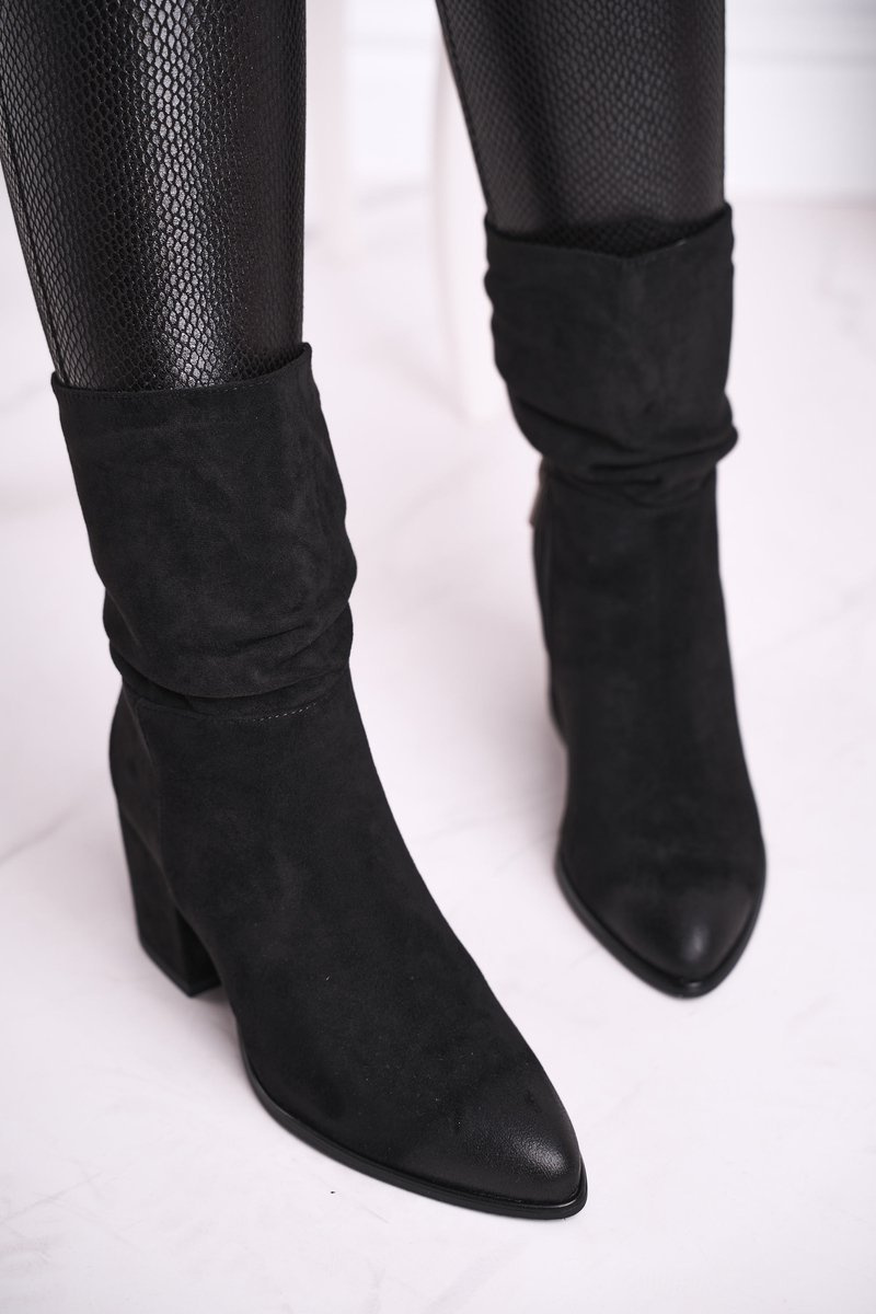 Жіночі черевики на високому каблуці з еко-замші чорного кольору