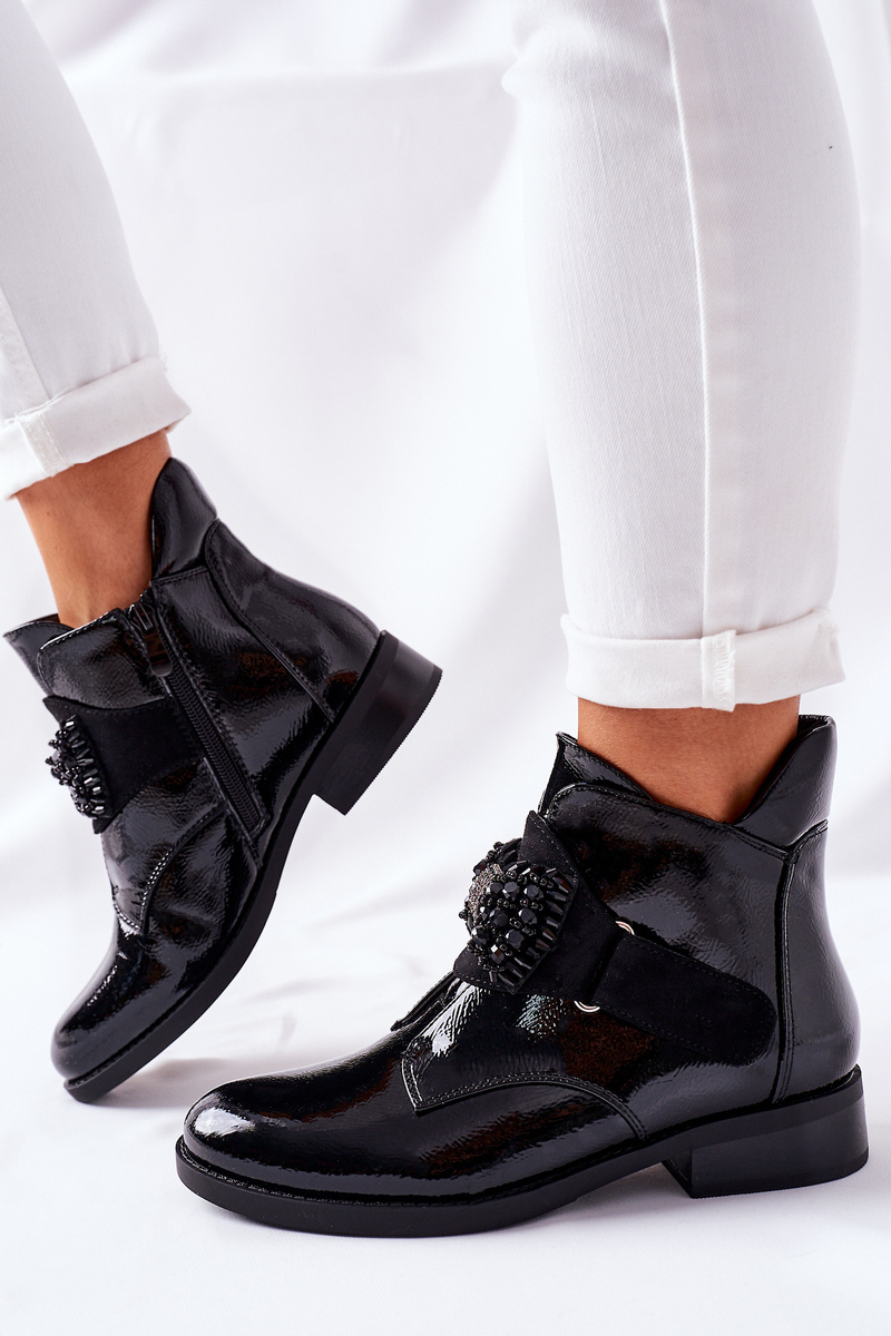 Жіночі черевики на плоскій підошві лаковані чорні кристали Schuler