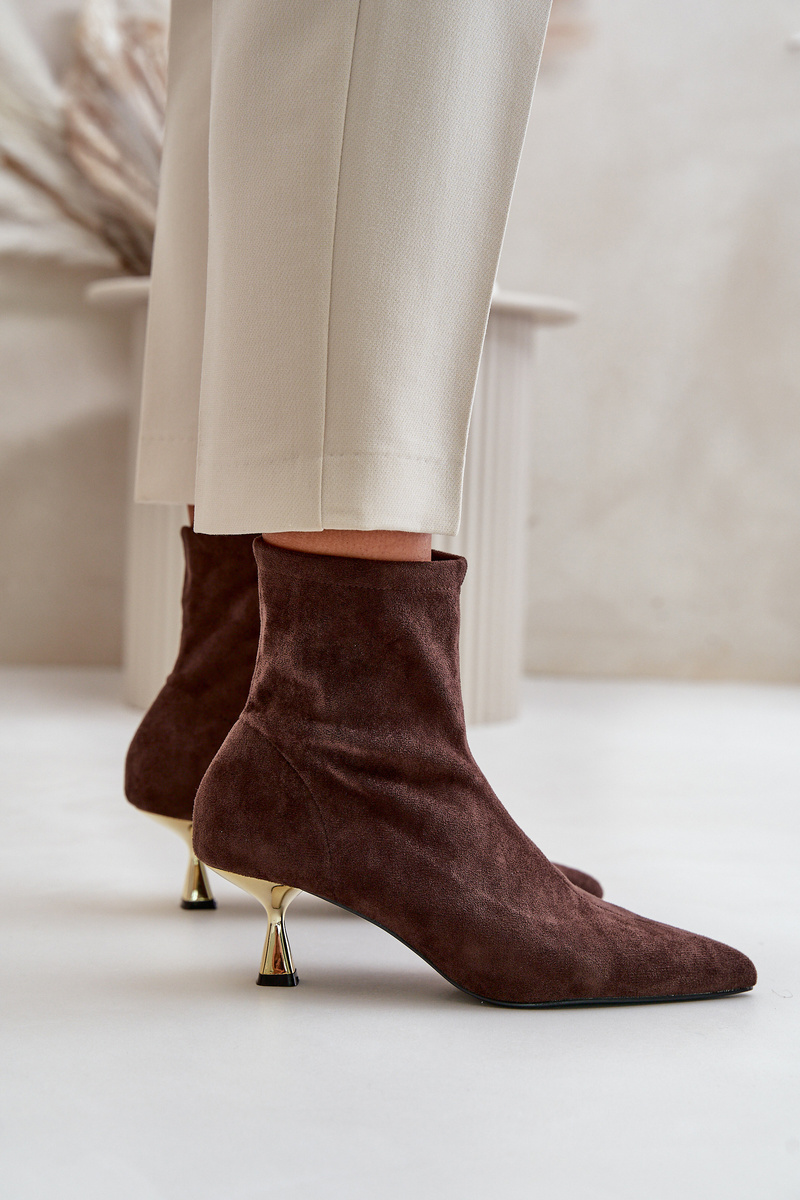 Стильні жіночі ботильйони на декоративній шпильці - елегантний аксесуар, який неодмінно приверне увагу. Виготовлена з еко замші. Застібається на блискавку для зручності та зручності надягання. Загострені пальці додають витонченості, підкреслюють жіночність і стрункість фігури. Ідеально підходить для особливих випадків, а також для повсякденного стилю, коли ви хочете додати нотку елегантності. Обираючи розмір, орієнтуйтеся на таблицю розмірів.