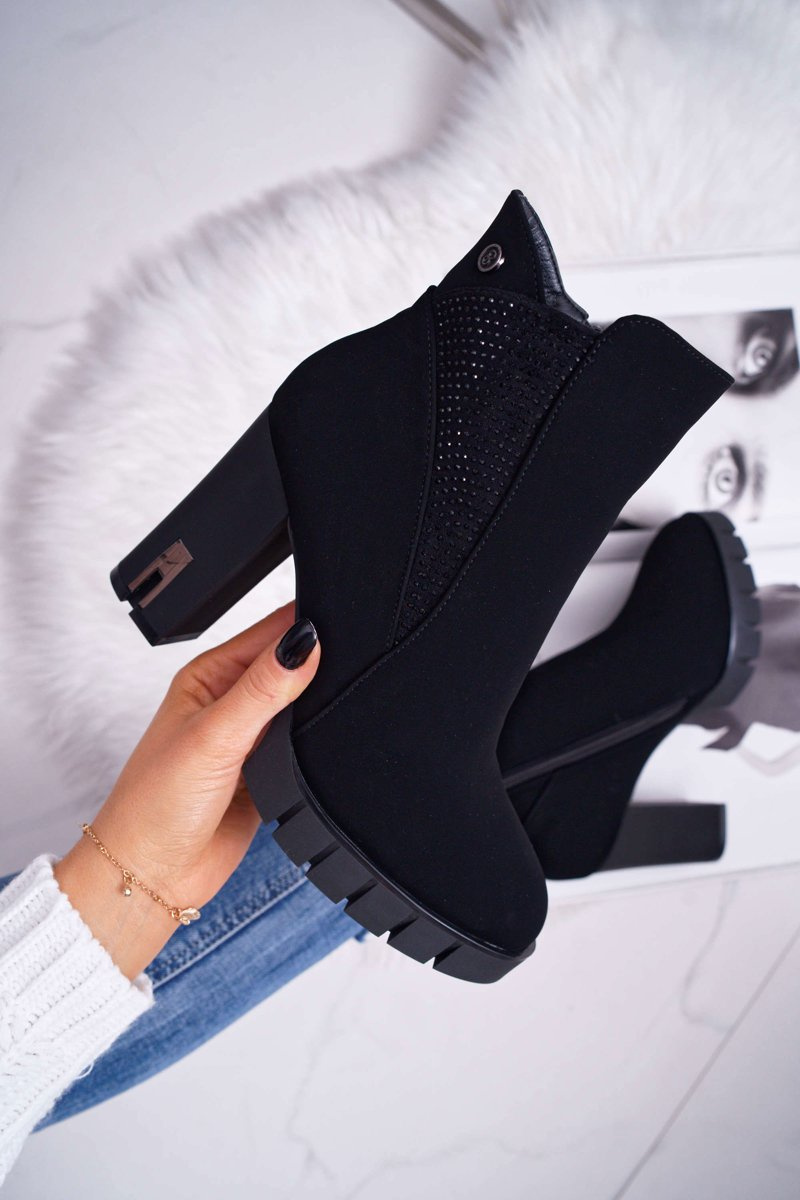 Класикою серед черевиків є чорний колір, нічого дивного, адже вони поєднуються практично з усім. М'яко утеплений інтер'єр у вигляді ковдри для взуття з коротким волоссям змушує нас не хотіти їх знімати! Застібка-блискавка з внутрішньої сторони полегшить їх надягання. Красива прикраса збоку у вигляді мерехтливих цирконів. Не чекайте більше і купуйте зараз! При виборі розміру вказуйте таблицю розмірів