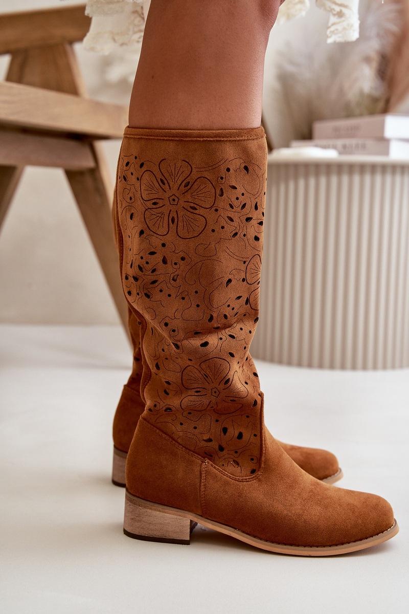 Жіночі чоботи з вирізом на низькому каблуці зі штучної замші із застібкою на блискавці Верблюжі орхідеї