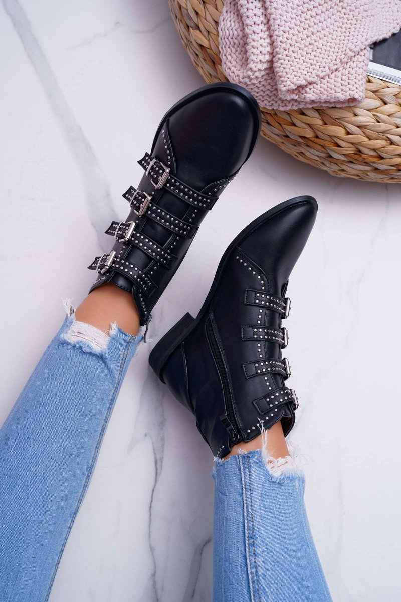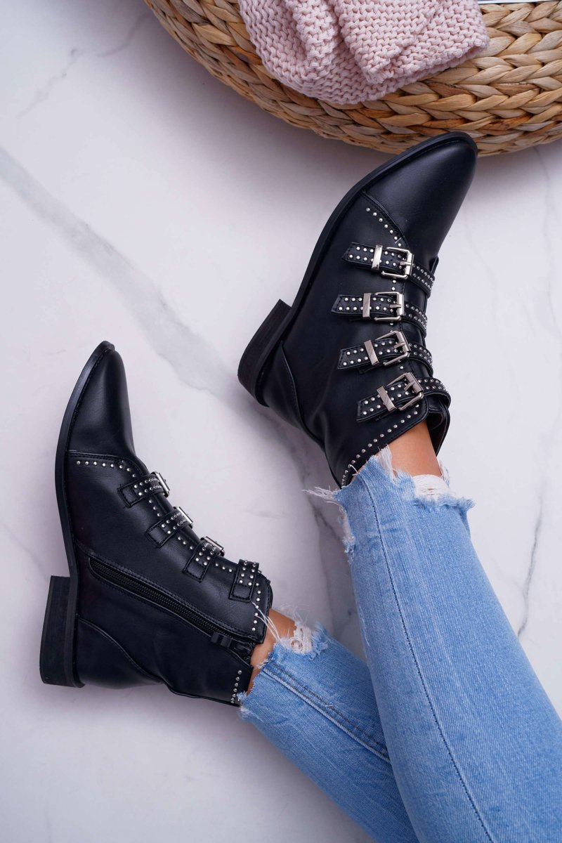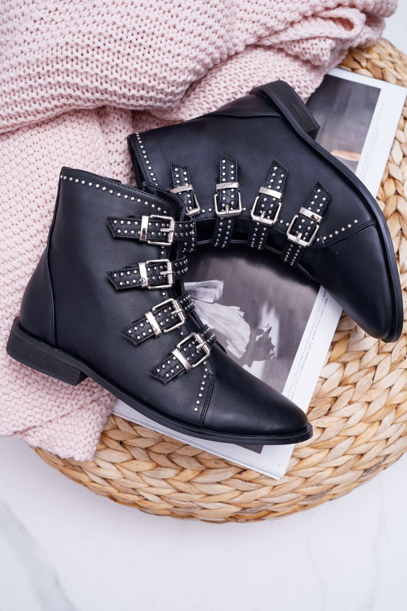 Жіночі чоботи з заклепками і пряжками чорні Berugio
