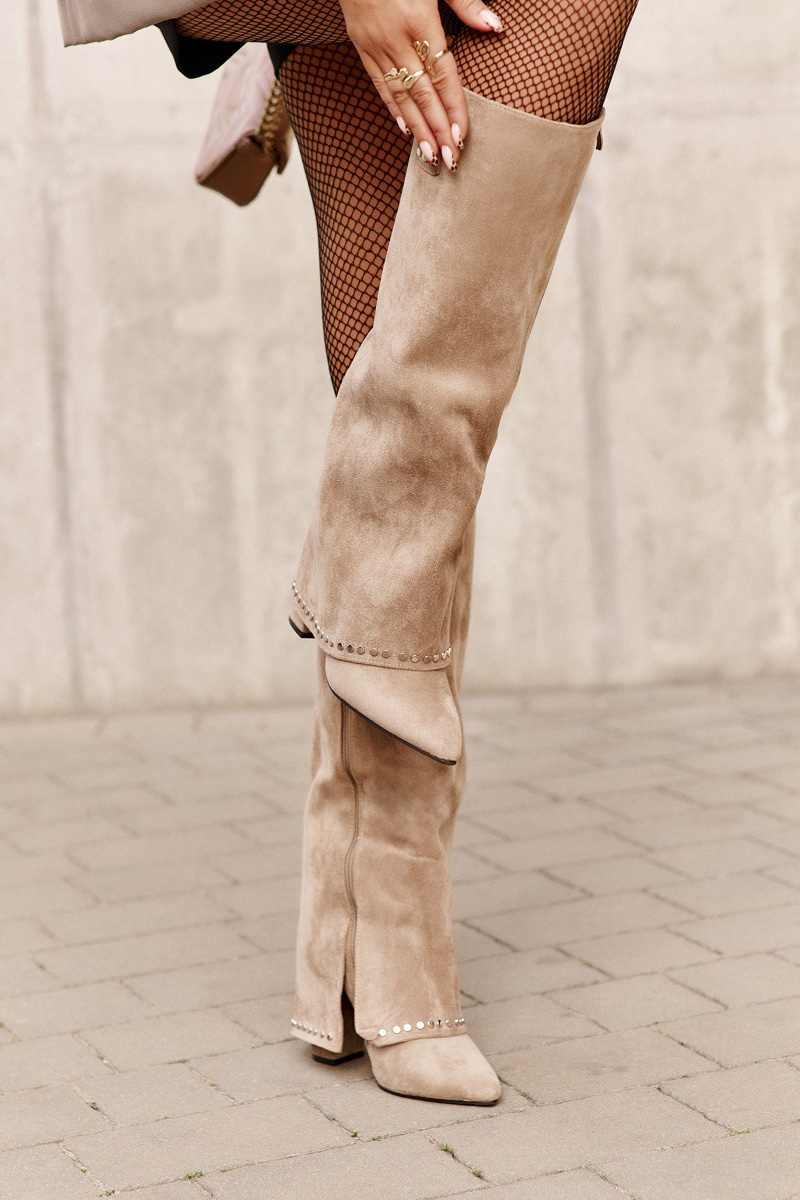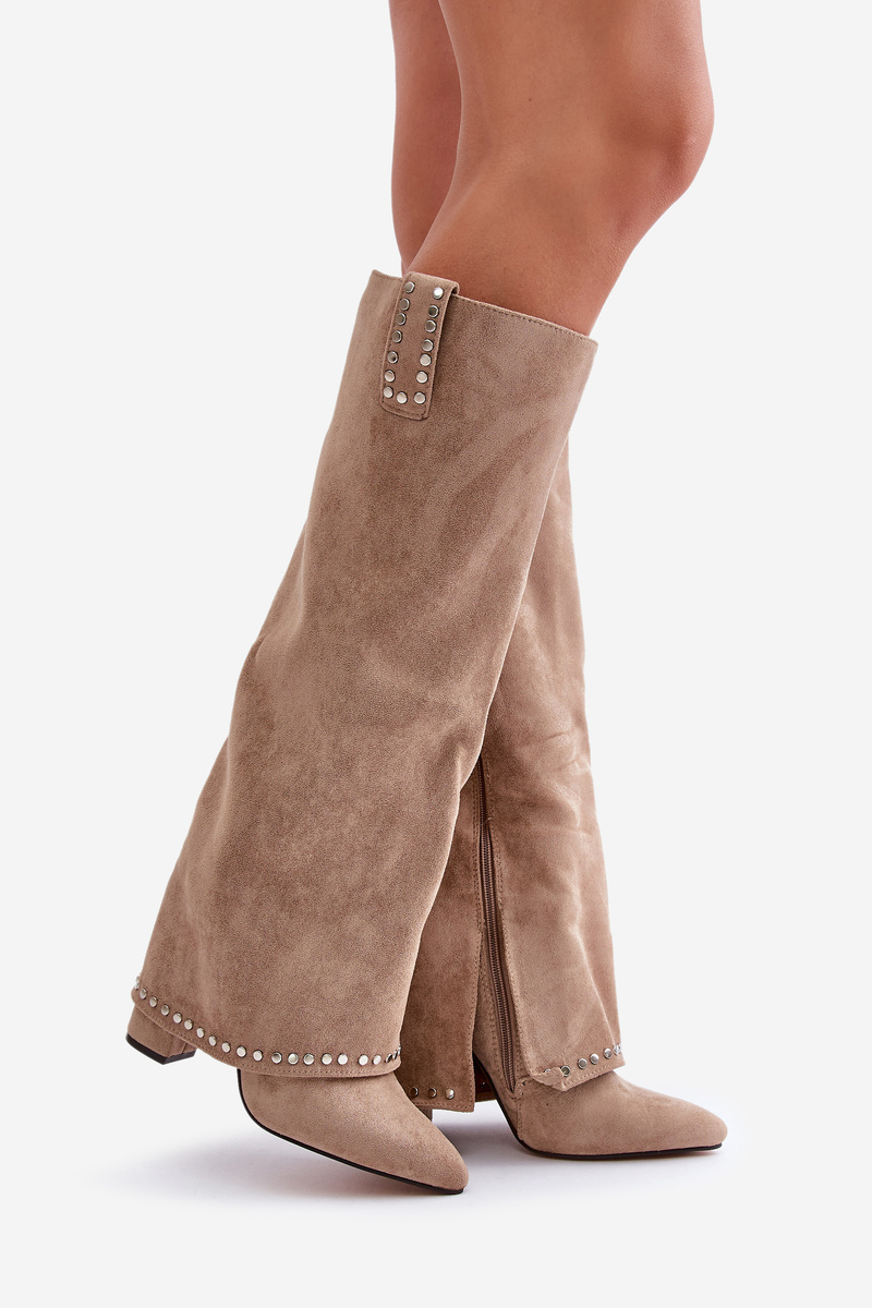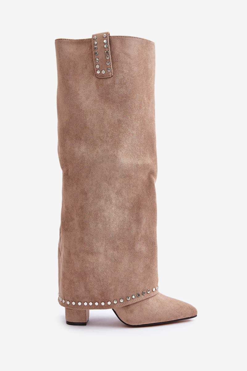 Жіночі чоботи з підгортанням на каблуці Бежеві Kaithena