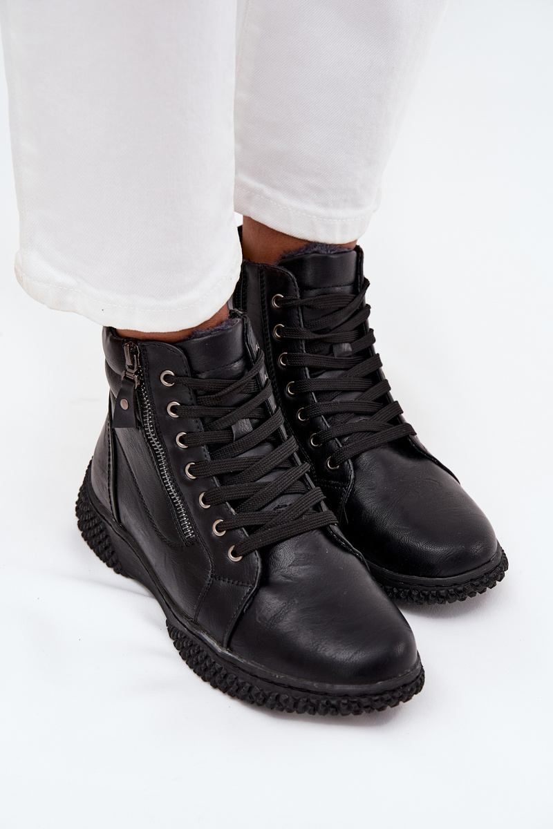 Жіночі ботінки з екологічної шкіри – стильне та зручне взуття для холодніших днів. Внутрішня частина утеплена м’яким хутром, що забезпечує тепло і комфорт. Модель поєднує шнурівку з подвійною застібкою-блискавкою, одна з яких служить декоративним елементом, додаючи модний вигляд. Ідеально підходять для щоденних виходів. При виборі розміру рекомендуємо орієнтуватися на таблицю розмірів. Будь ласка, зверніться до розмірної сітки при виборі розміру.