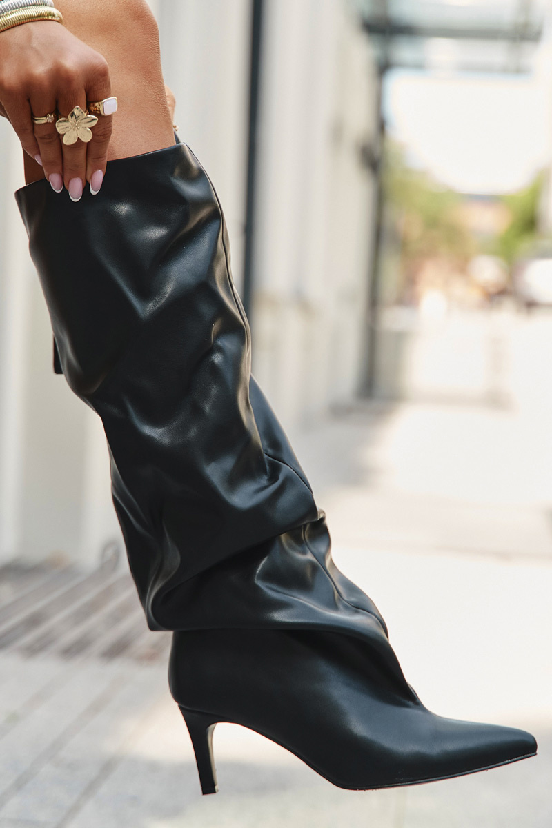 Жіночі чоботи на високому каблуці з ковзанням і зімкненням чорні Rosivine