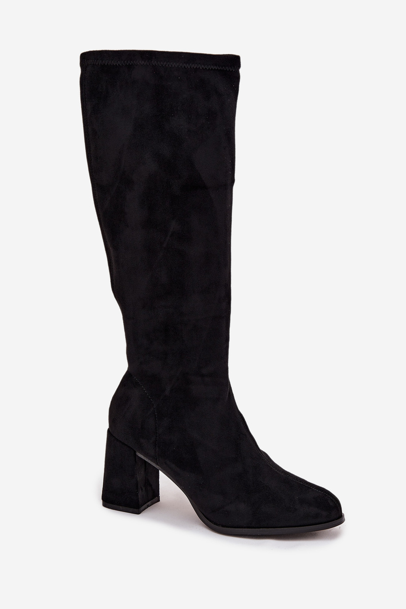 Жіночі чоботи на каблуці з еко замшу чорні Yelisse
