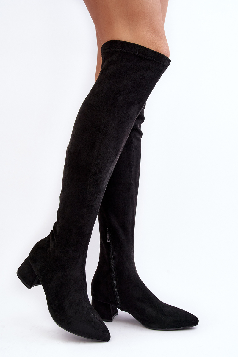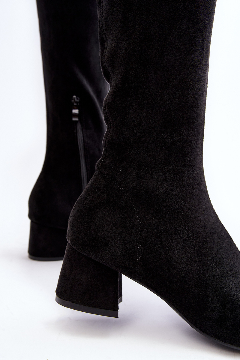 Модні жіночі чоботи з халявою до коліна. Виготовлена з еко замші. Встановлений на низький блоковий каблук. Гострий носок візуально стрункий ваші ноги. Модель сліпон з додатковою застібкою на блискавку. Стрижень оздоблена вишивкою. Ідеальна модель для міні суконь або спідниць. Вони обов'язково у вас! Вибираючи розмір, орієнтуйтеся на таблицю розмірів.