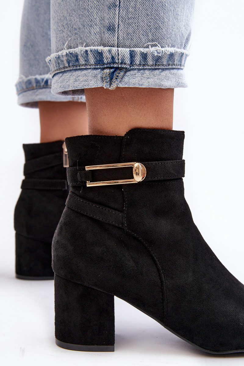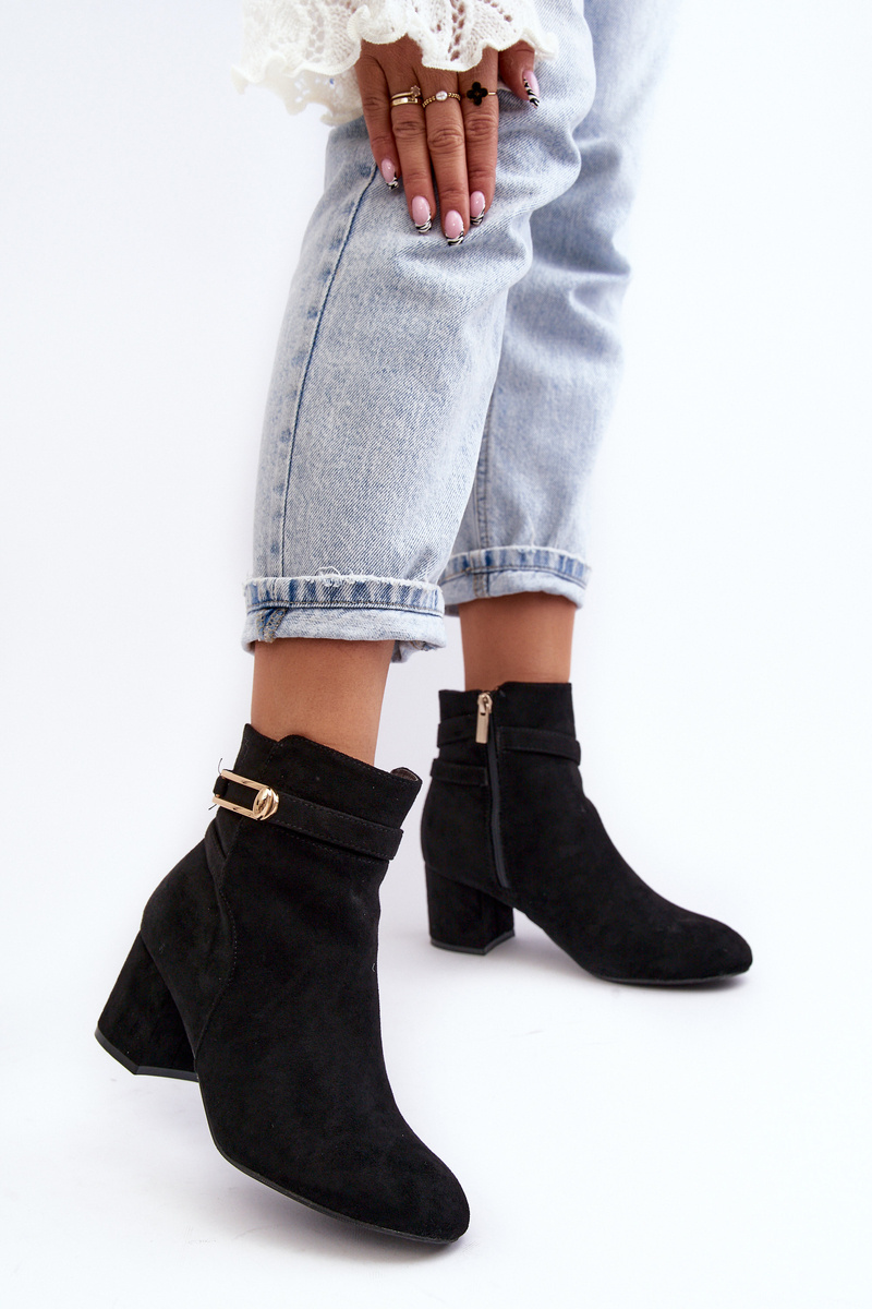 Жіночі ботильйони. На невисокому каблуці. Виготовлена ​​з еко замші. Застібається на блискавку. Круглі носи. Зсередини утеплений підкладкою. Зверху на штанині дві тонкі ремінці. Крім того, ця модель має жорсткий носок. При виборі розміру орієнтуйтеся на таблицю розмірів.