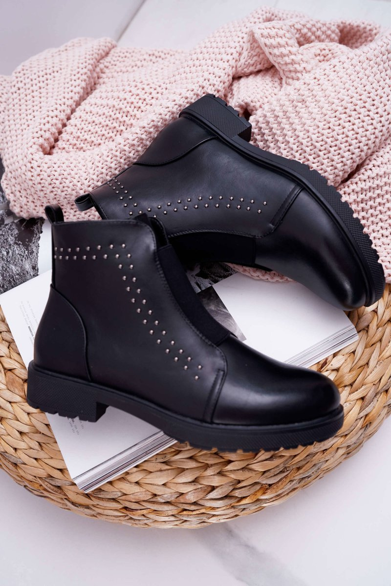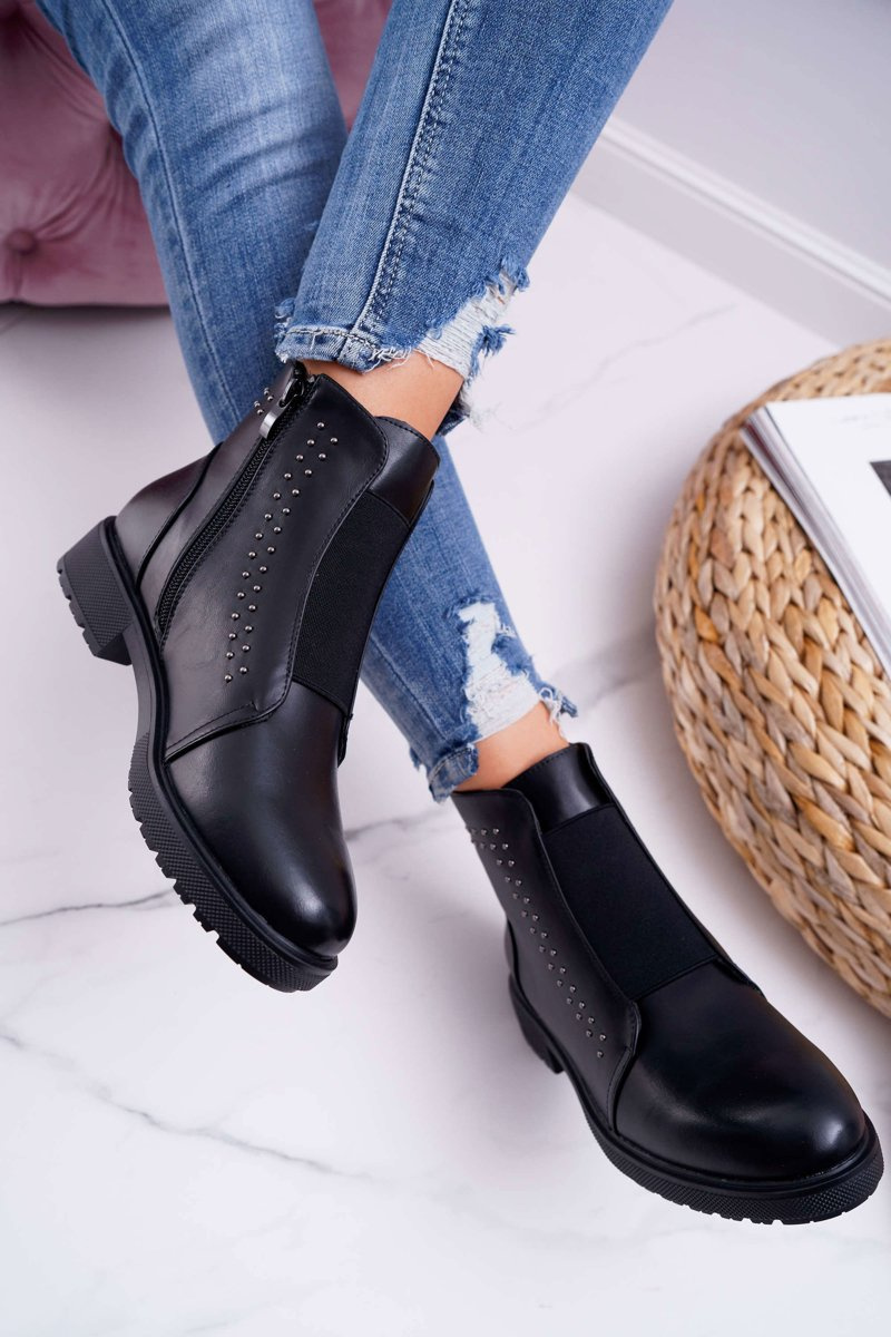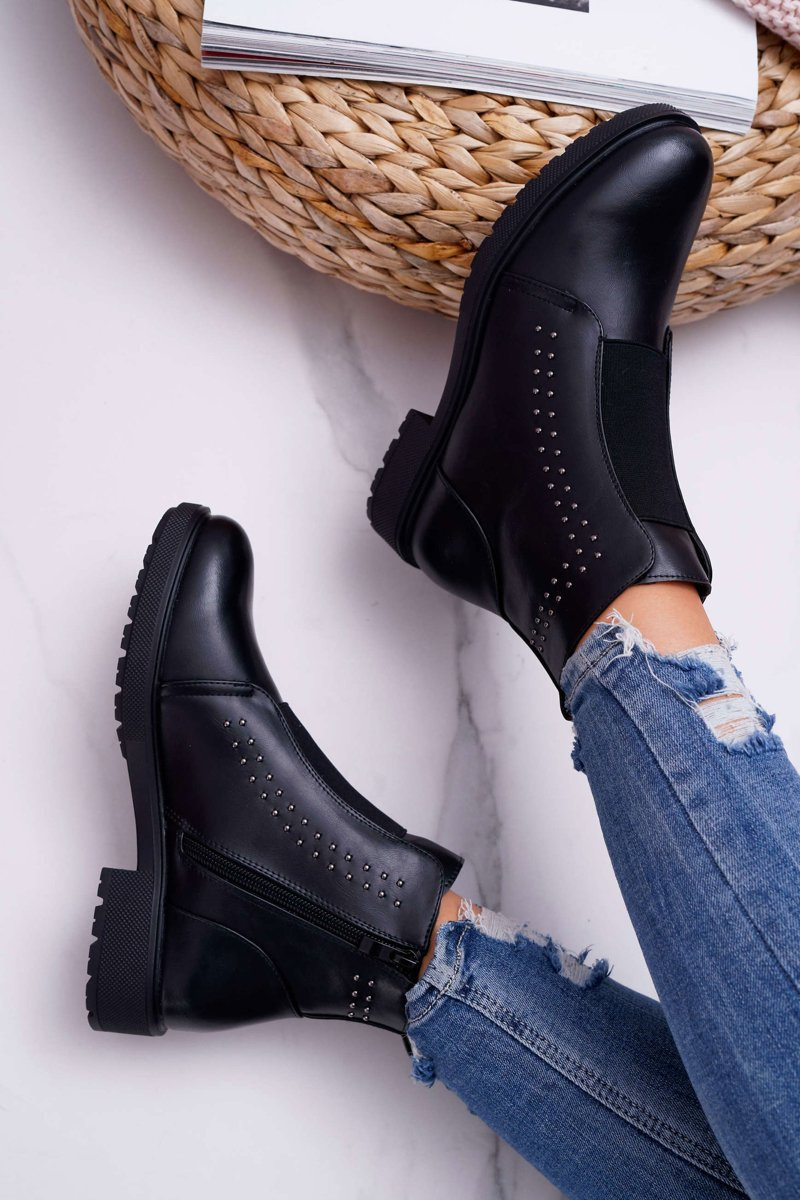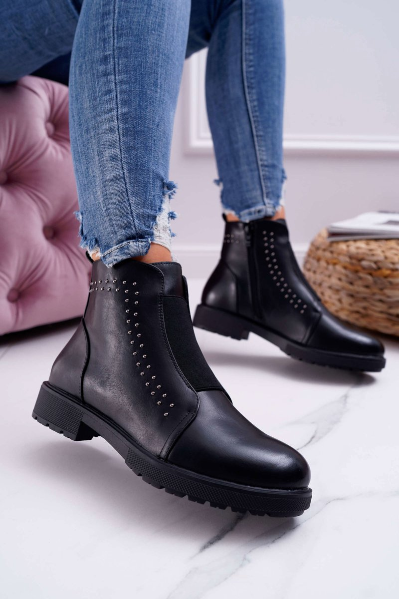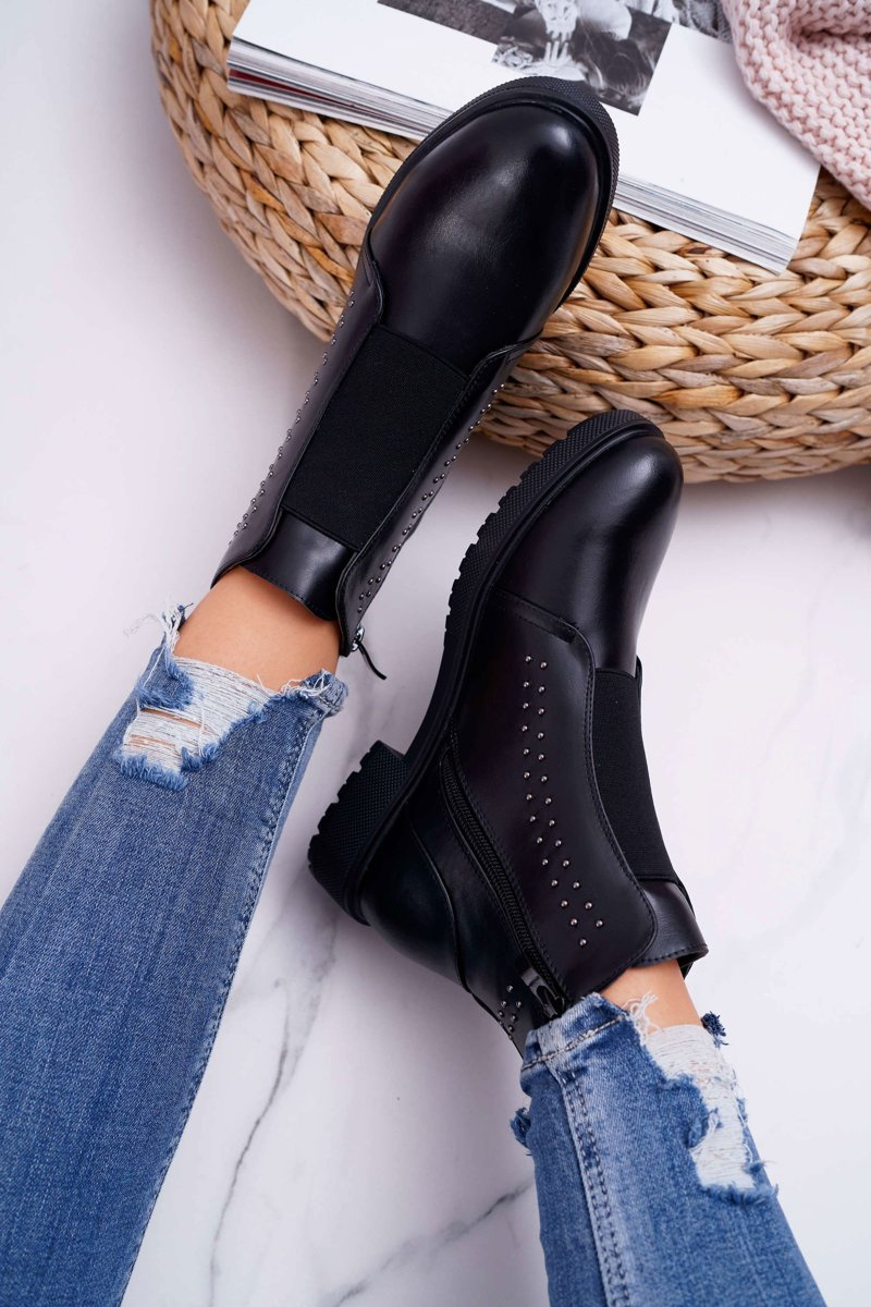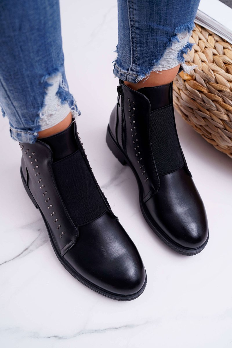 Жіночі чоботи на плоскій каблуці з клепами чорні Sergio Leone BT519