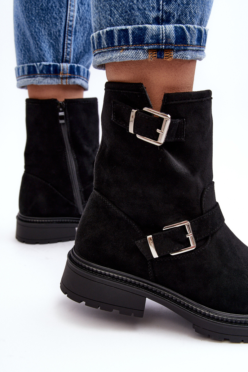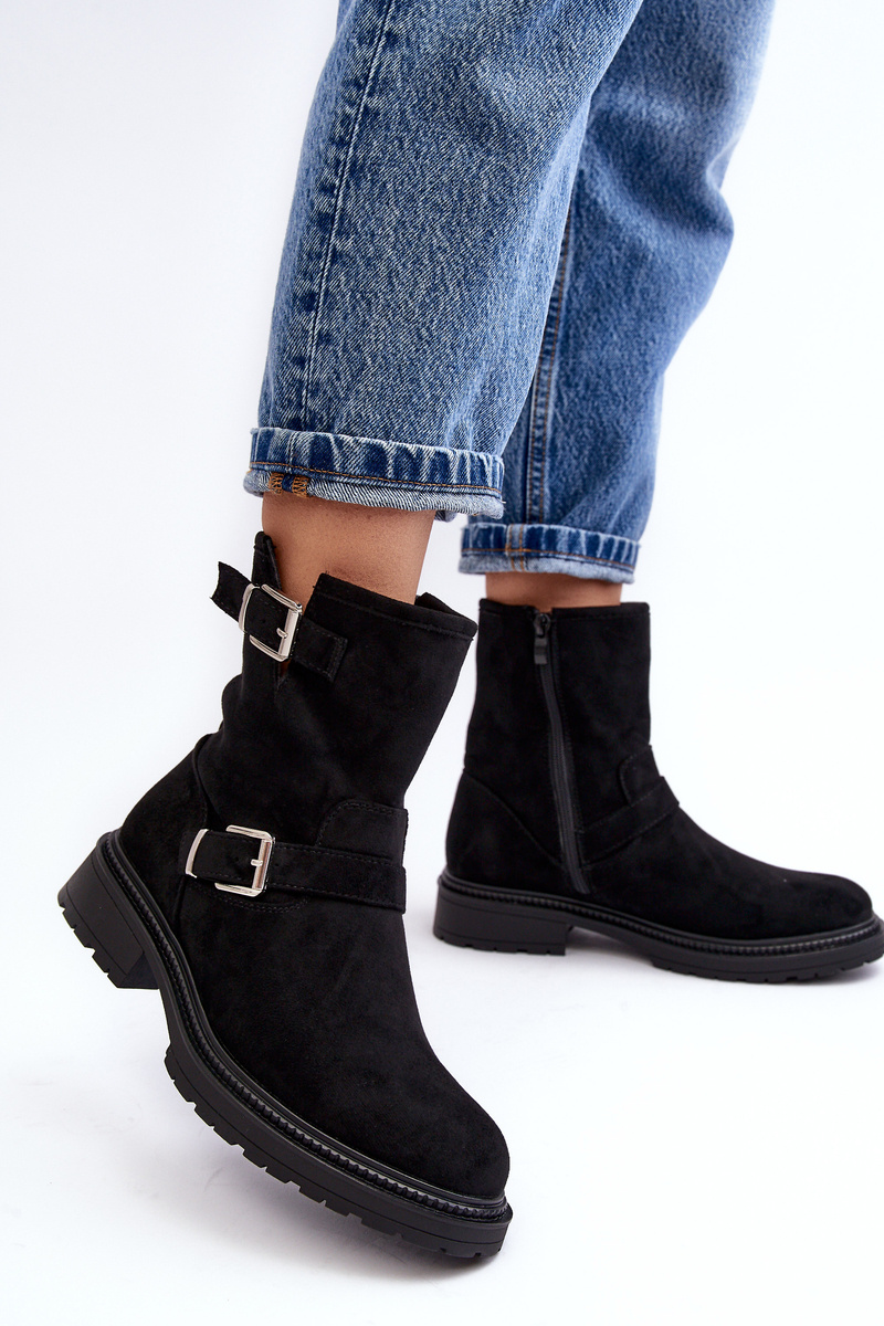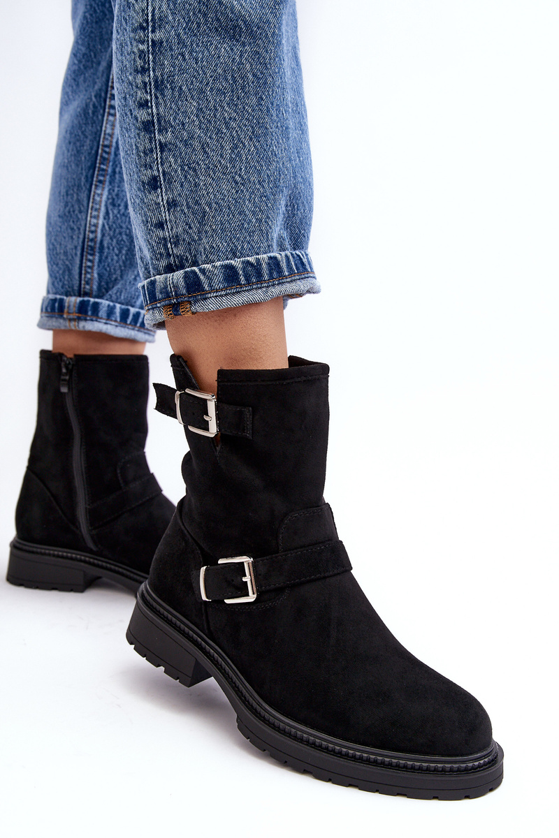 Жіночі чоботи на плоскій каблуці з пряжками чорного кольору Bliggore