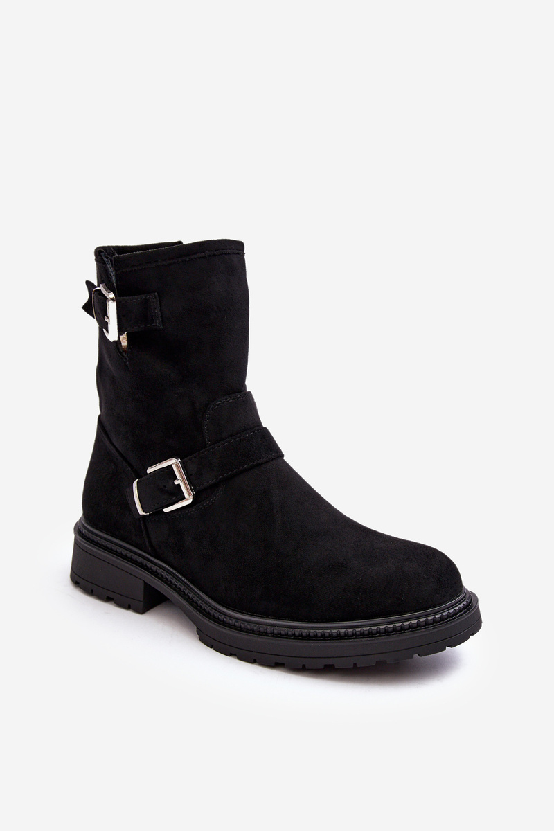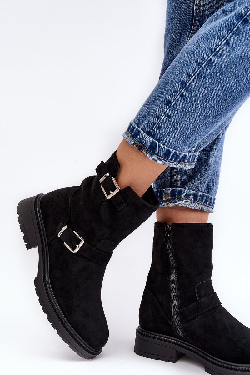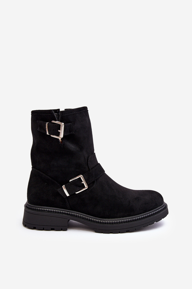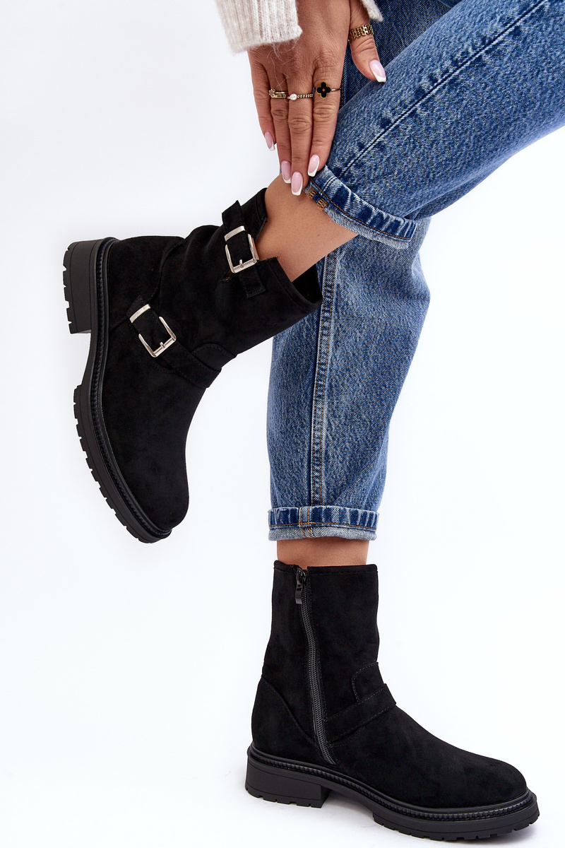Жіночі чоботи на плоскій каблуці з пряжками чорного кольору Bliggore